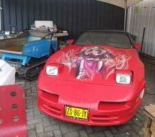 Bij Toolbarshop en Used Products is van alles te koop: van grasmaaiers, scootmobie len, sieraden en gitaren tot mo toren en zelfs een handgemaakte houten sculptuur van Gene Simmons, de front man van de glamrockband Kiss. “Eigenlijk alles, zolang het maar niet ademt, dus je schoonmoeder willen we niet”, stellen zo wel Ronnie als Rob. Maar even zonder gek heid: Rob verkoopt alleen geen kleding en meubels, tenzij het echt exclusief is.