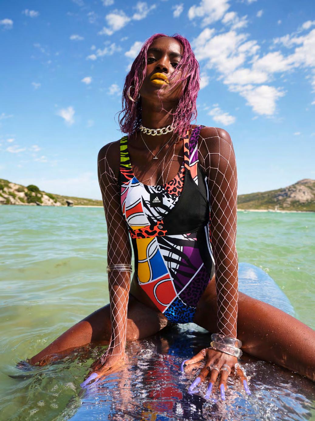 RIBBED SWIM POOLSIDE ONE PIECE LC - PARASAILING COMPRESSION TOP - THYME BOY SHORTSTENCEL™ MODAL BLACK RAINBOW