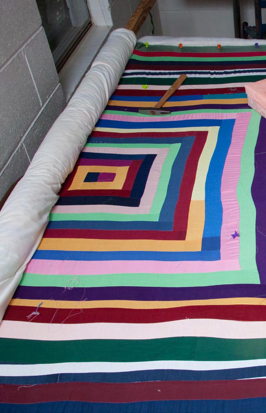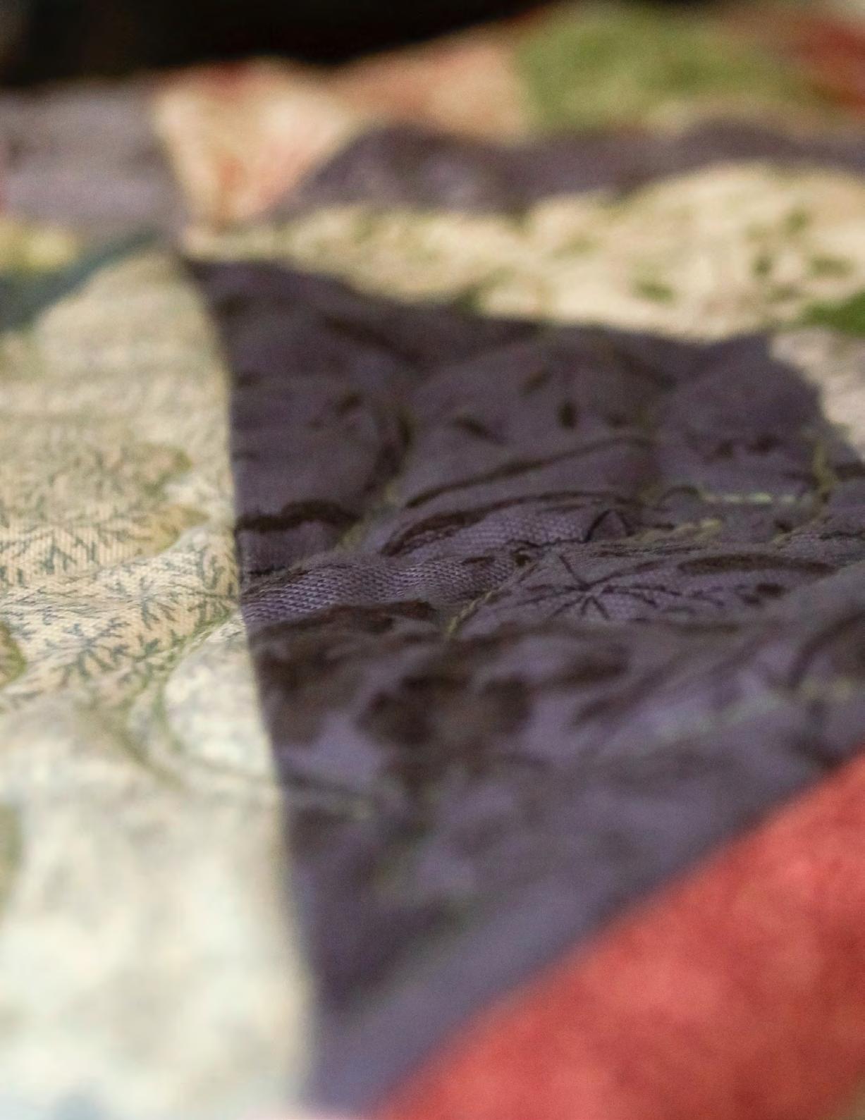 Made with 100% cotton, Nathanael Tito Gonzalez was inspired to make this piece by his passion for the mystery of aliens. Represented here are the total solar eclipse in Oregon (2017), native designs from Santa Fe, New Mexico, and the California poppy fields.