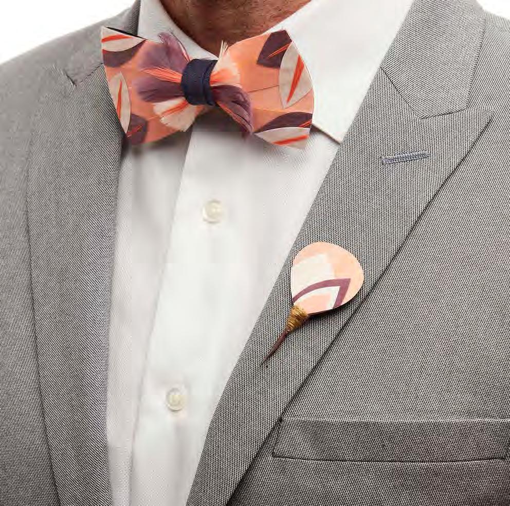 Show off your summer style with the Swashbuckler lapel pin. This goose feather, peach-hued adornment features just the right amount of dapper details to make you stand out.