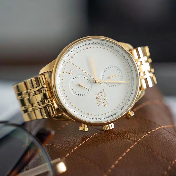 High-end double butterfly clasp (also known as a dual deployment clasp) that adds distinction other brands don't have. Fully-functional Miyota chronograph with independent sweeping secondhand ensures accuracy