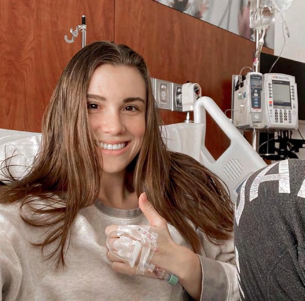 things got bleak, such as when she had to sign a directive in case she was unable to speak or function after spinal surgery and when we were told she had a 50% chance of paralysis. After her surgery, her legs moved, and she began walking with help. She was told that she was in the rare 1% to walk again so soon after such a surgery.”