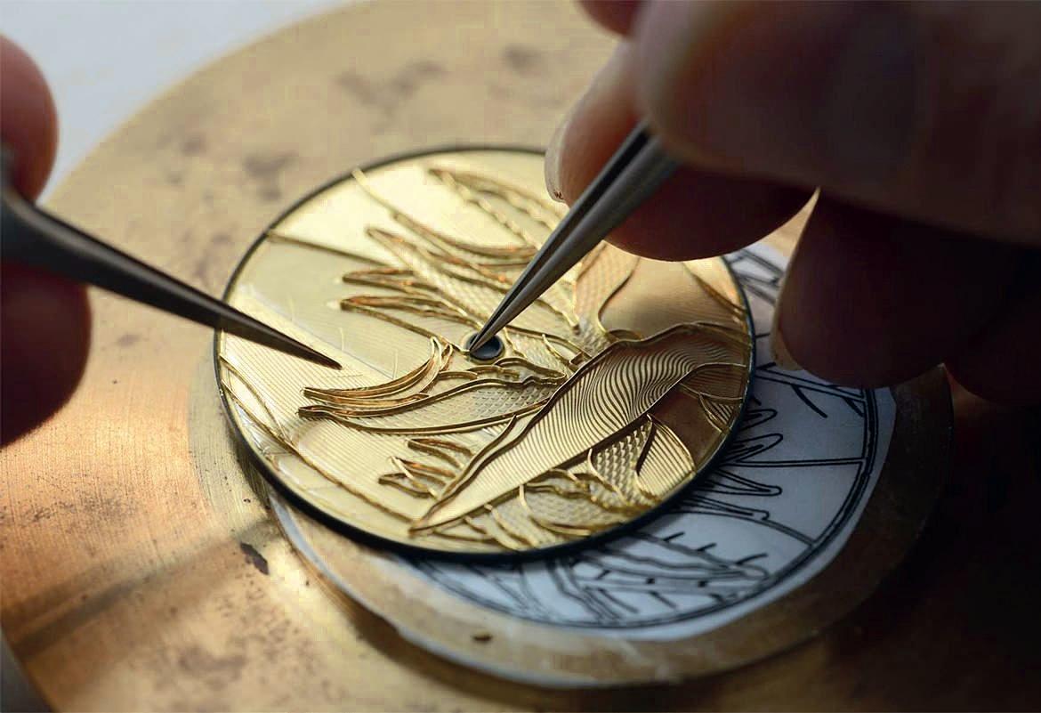 Cloisonné enamel requires the craftsmen to bent tiny copper wires in certain outline and glue them to the dial. Then enamel powders in various colours would be filled in the shape consisted by copper wires, each colour has to be fired after the filling in order to secure its hue. Multiple times of firing and polishing are required before the dial finally turns into a delicate and artistic work of art. Since the process is extremely complicated, the production of cloisonné enamel dial was always low. With quartz crisis that caused a significant decline of Swiss watchmaking industry, Patek Philippe stopped its production of cloisonné enamel dial as the market demand dropped.