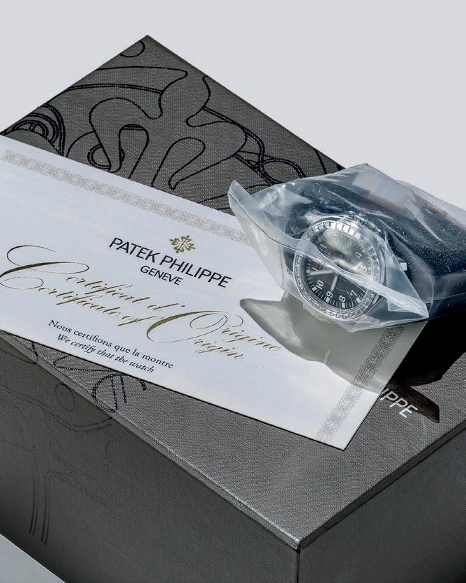 Right: Patek Philippe | World Time 5131G-010 隨著市場審美觀改變, Ref. 5167 尺寸比前作更大, 40.8 毫米的身形充分彰顯運動錶該有的豪邁,卻又能讓百達翡麗細 膩之處展露無遺。在 Ref. 5167 這個型號的眾多款式中,又以 鑲嵌長形切割鑽石的 Ref. 5167/300G-010 最為少見。共 6.32 克拉的 101 枚鑽石佈滿錶圈及錶耳,據估計此型號百達翡麗大 概只生產了 10 只,而目前更是只有兩只曾經在市場上出現過。