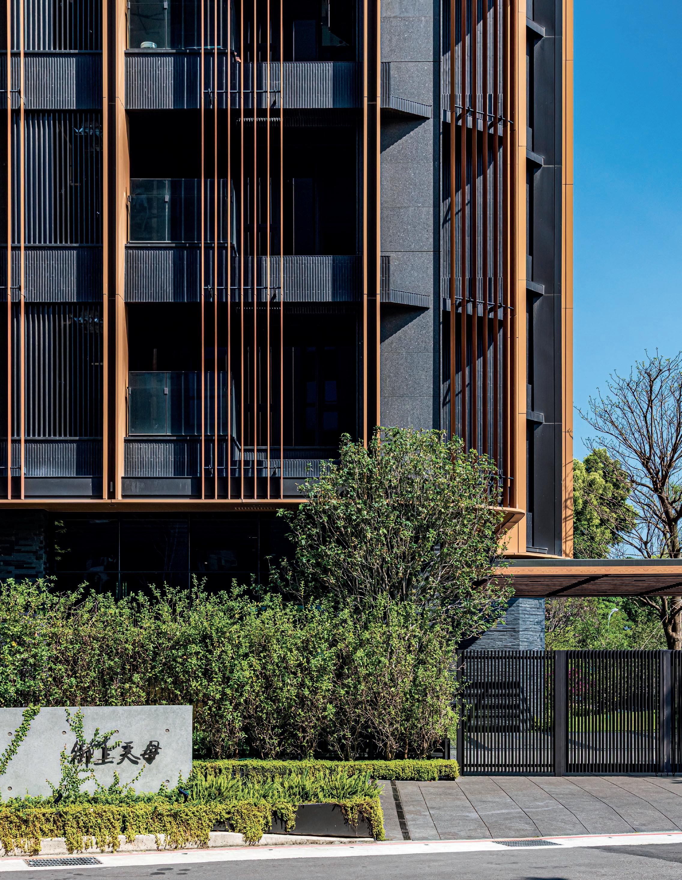不只如此,「御上天母」更呼應了當代設計的全球趨勢-與自然共 生、簡化生活、擁抱永續。屋頂的太陽能板、多樣化的植物生態,以及 與社區綠地的連結等,無不體現對環境的承諾。「我們希望這座建築為 整個社區注入更多綠意。」李天鐸建築師說。他們希望透過分享的赤誠 心意,讓整個街區也能同時共好與豐盛。