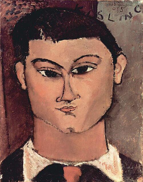 儘管交遊廣闊、社交生活豐富,莫依斯.奇斯林在藝術創作上卻 極為自律。他對共用畫室的友人莫迪里亞尼不吝批評,曾直言:「一 個月有 200 法郎生活費,卻把 190 法郎花在酒和毒品上,自然會陷入 貧困。」然而,即使語帶責備,奇斯林仍是莫迪里亞尼在巴黎最親密 的朋友。他陪伴對方走完人生最後的時光,並在其過世後親手為他製 作石膏死亡面具,後來翻鑄成銅像,被多家美術館典藏。據文獻記載, 莫迪里亞尼也曾為奇斯林畫過肖像,畫中展現了兩人深厚友情與彼此 觀察力的呈現。