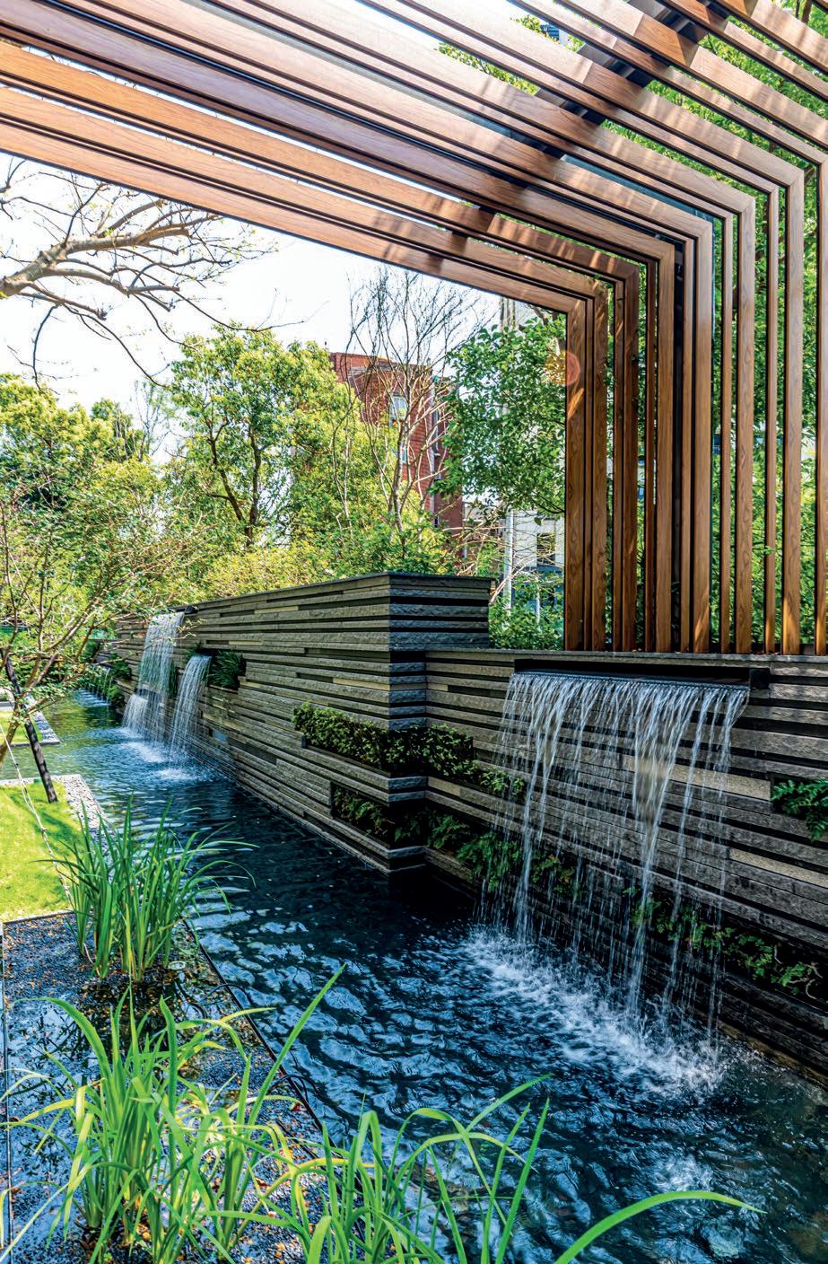 戶外景觀設計則帶來季節性的視覺與嗅覺體驗,從春天的花香到秋天的色彩,每一 刻都充滿驚喜。超過 100 種植物被精心挑選,模擬森林、山谷等的豐富生態。「我們創 造了多重感官體驗。」楊雪琪總經理分享:「西北角的層次花園、前方的季節山谷、燒 烤區的果樹與香草,每一處都是如畫風景。」這些植物不僅美化空間,更吸引了鳥類、 青蛙與松鼠,讓「御上天母」成為都市中的生態綠洲。經過約一年試驗, 88% 至 98% 的 植物已穩定生根,展現出自然與建築的和諧共生。透過季節更迭、綠意延伸與香氣動線, 打造一個「有感」的生活環境。