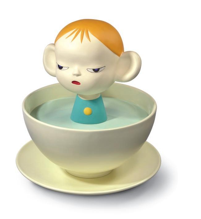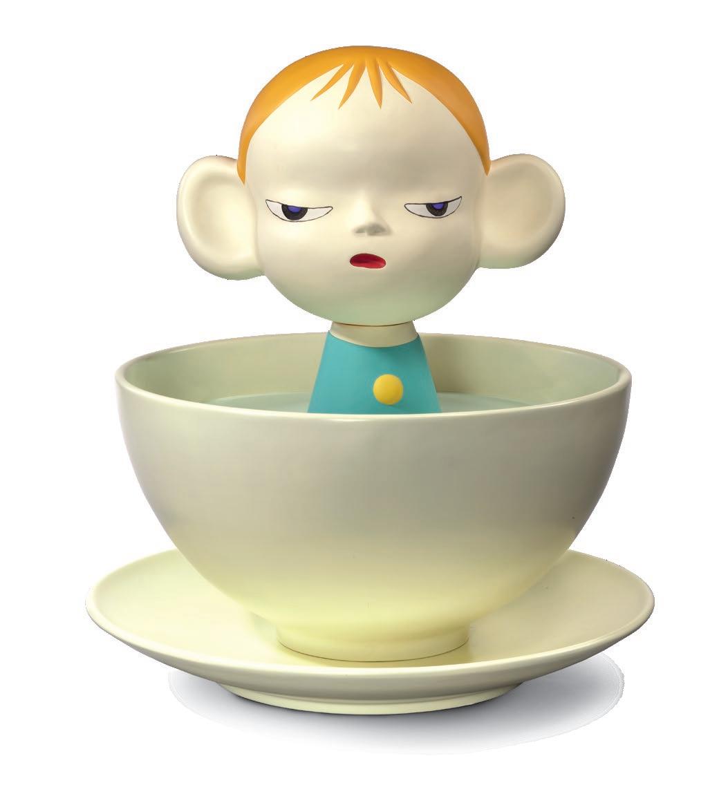 Loneliness is prevalent among travelers away from home. This large-scale representative work, Cup Kids, was completed in 1995, a significant year of Nara's career. That year was the turning point of his artistic career as his works were brought from Germany to SCAI The Bathhouse Gallery in Tokyo for his first solo exhibition "In the Deepest Puddle". It was also the time when his first gigantic dog sculpture received positive feedback from the art scene. Since then, similar subjects of glass fiber were