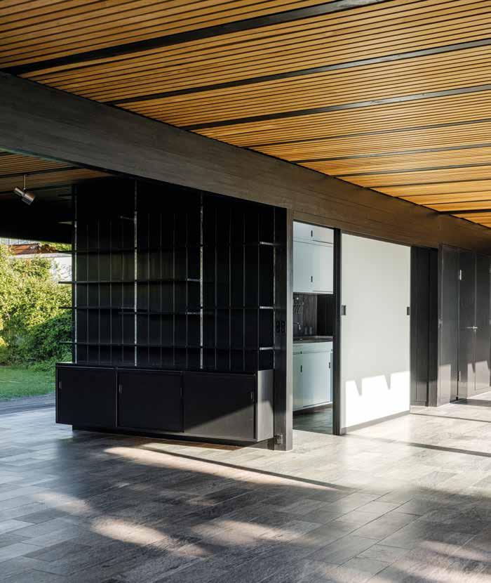 Skydedørene og husets gennemførte enkelthed med sammenhængende gulvflader og få lette vægge er inspireret af japanske boliger.