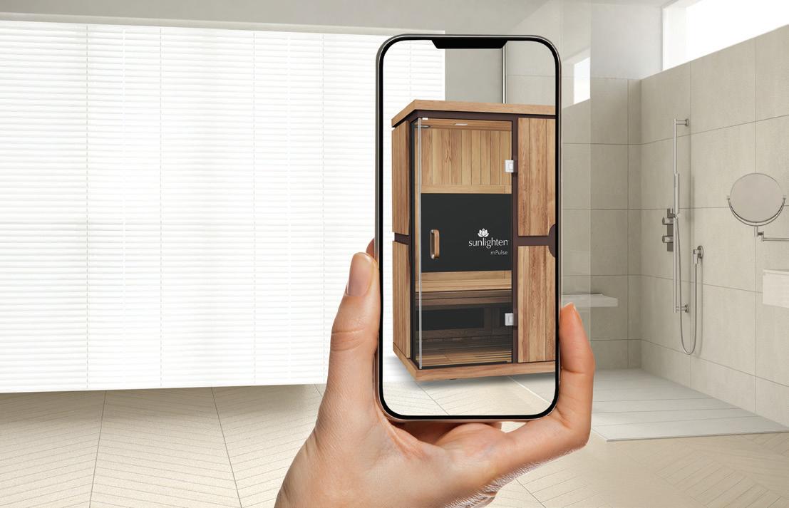 Your wellness oasis awaits. Perfect your home gym with an infrared sauna. Sunlighten’s elegant modern design gives you the ultimate self-care stack before or after an at-home workout. Cabin and custom saunas available from the world’s premier manufacturer right here in Kansas City. See this sauna in your space Scan the QR code to eng age our product visualizer on your phone. Open your camera and follow the prompts to see what a sauna will look like in any room in your home. Visit Sunlighten.com/designKC to learn and see more.