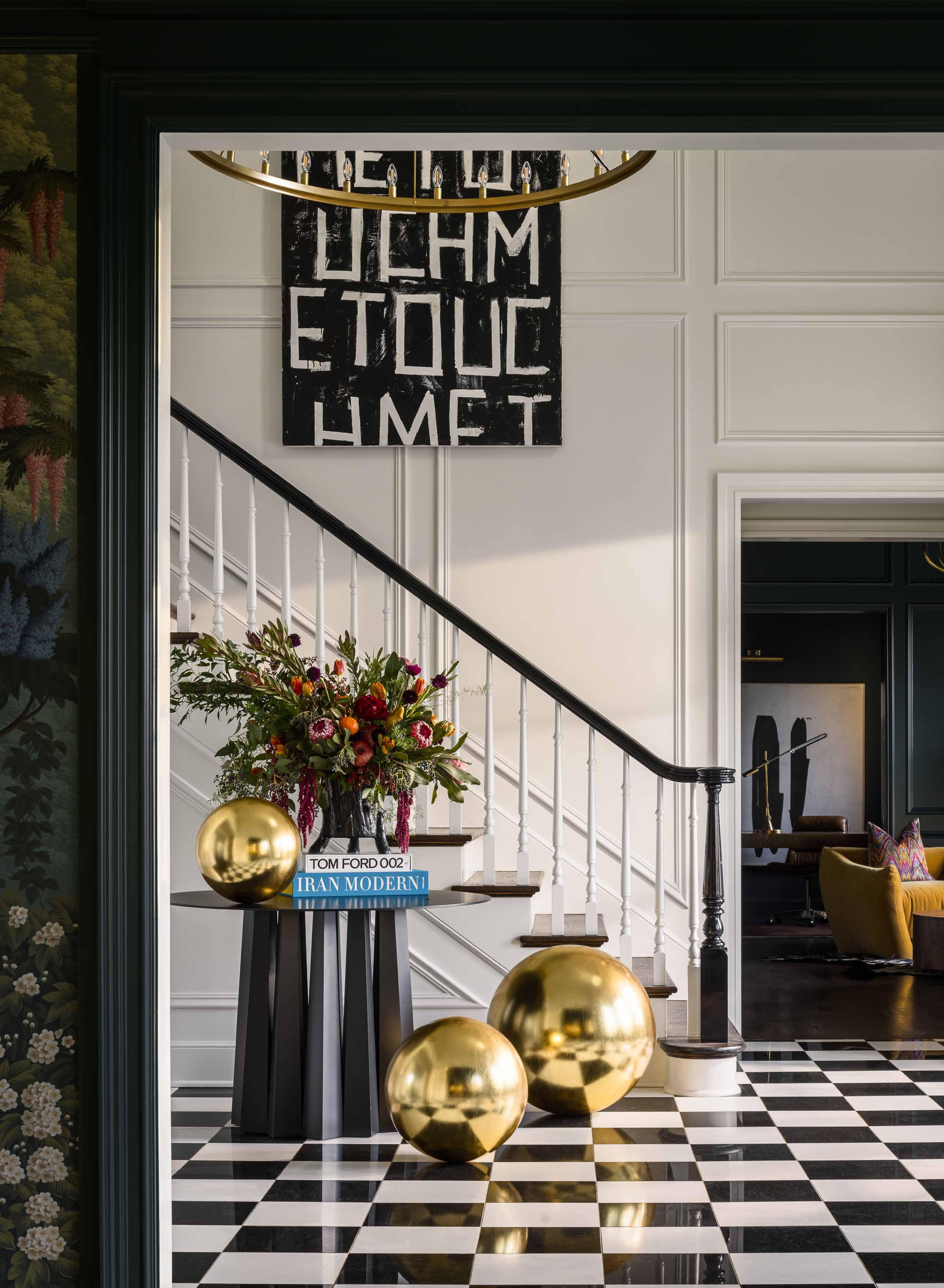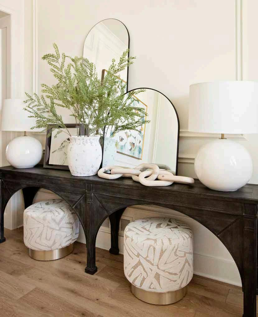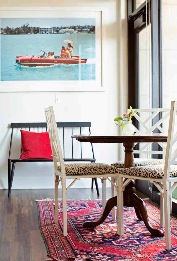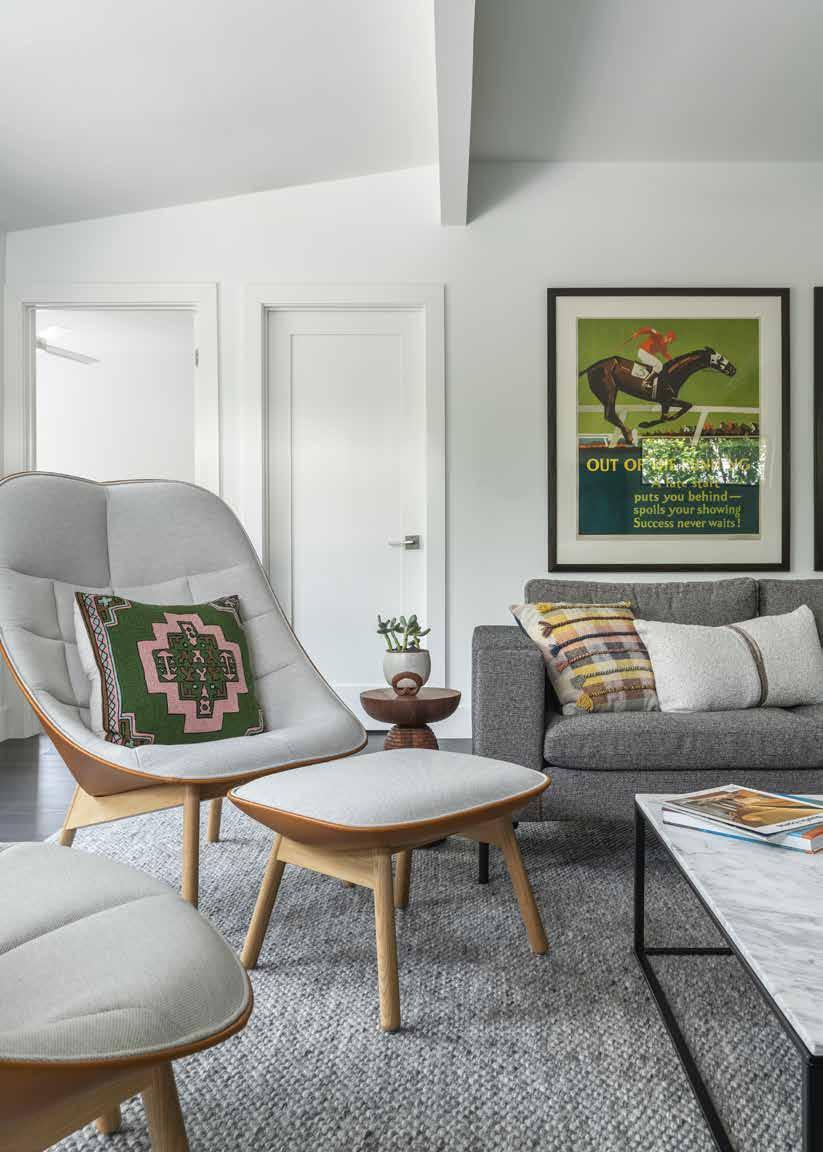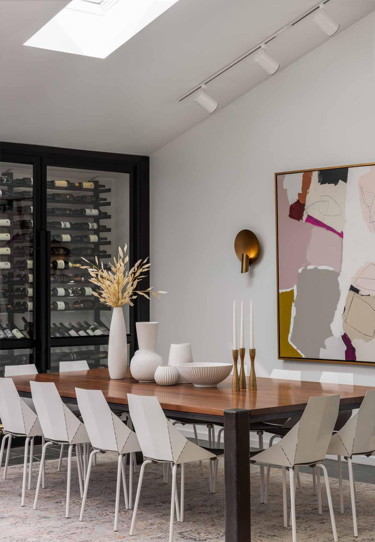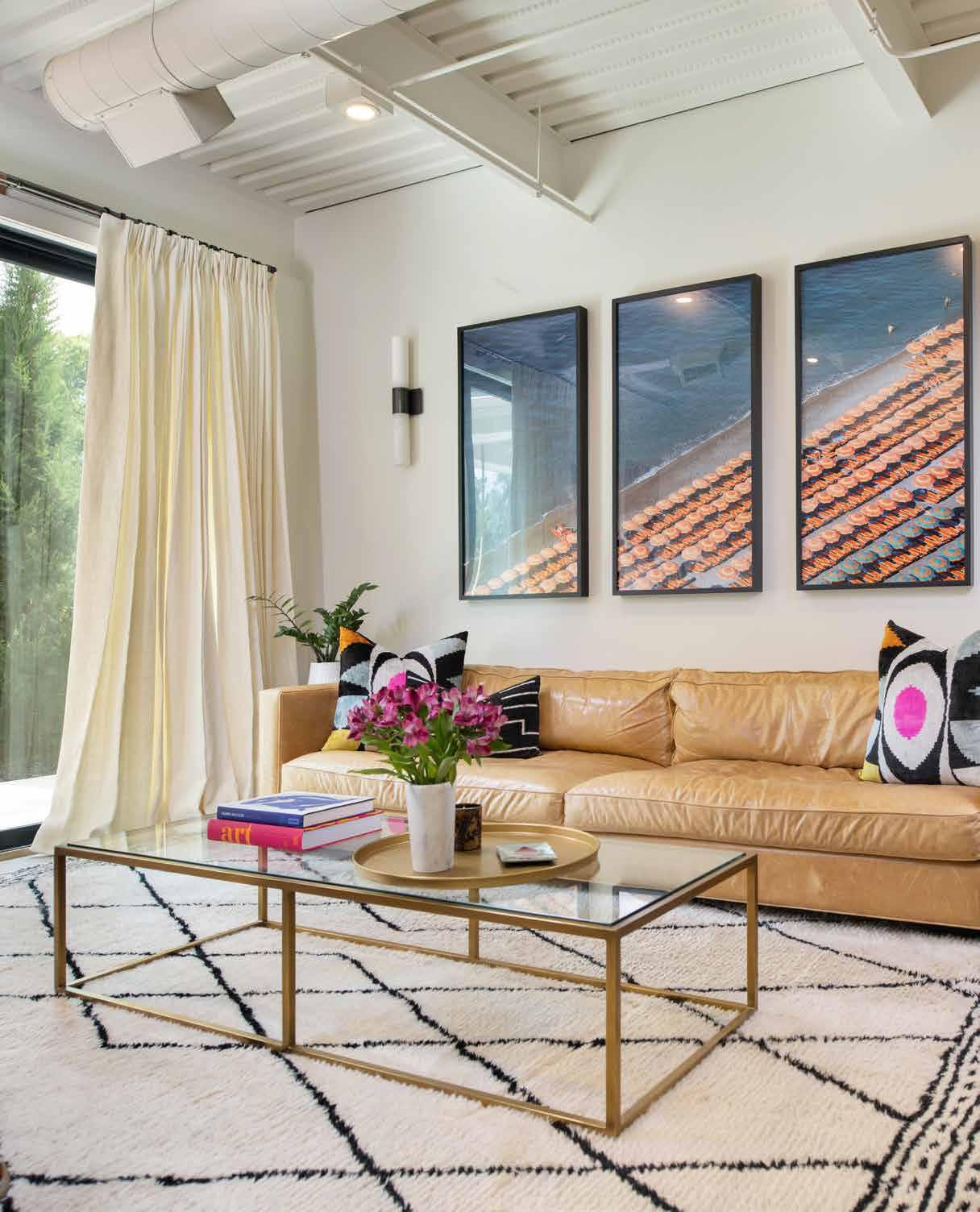 Rack–Janssen Glass and VintageView; Custom Dining Table and Entry Console–Dimensional Innovations Rugs: CB2; West Elm; FLOR; Vintage Oriental Furnishings: RH; West Elm; Golden & Pine; Design Within Reach; Crate & Barrel Accessories: Golden & Pine; Virginia Sin; Etsy; Family Tree Nursery; Crate & Barrel