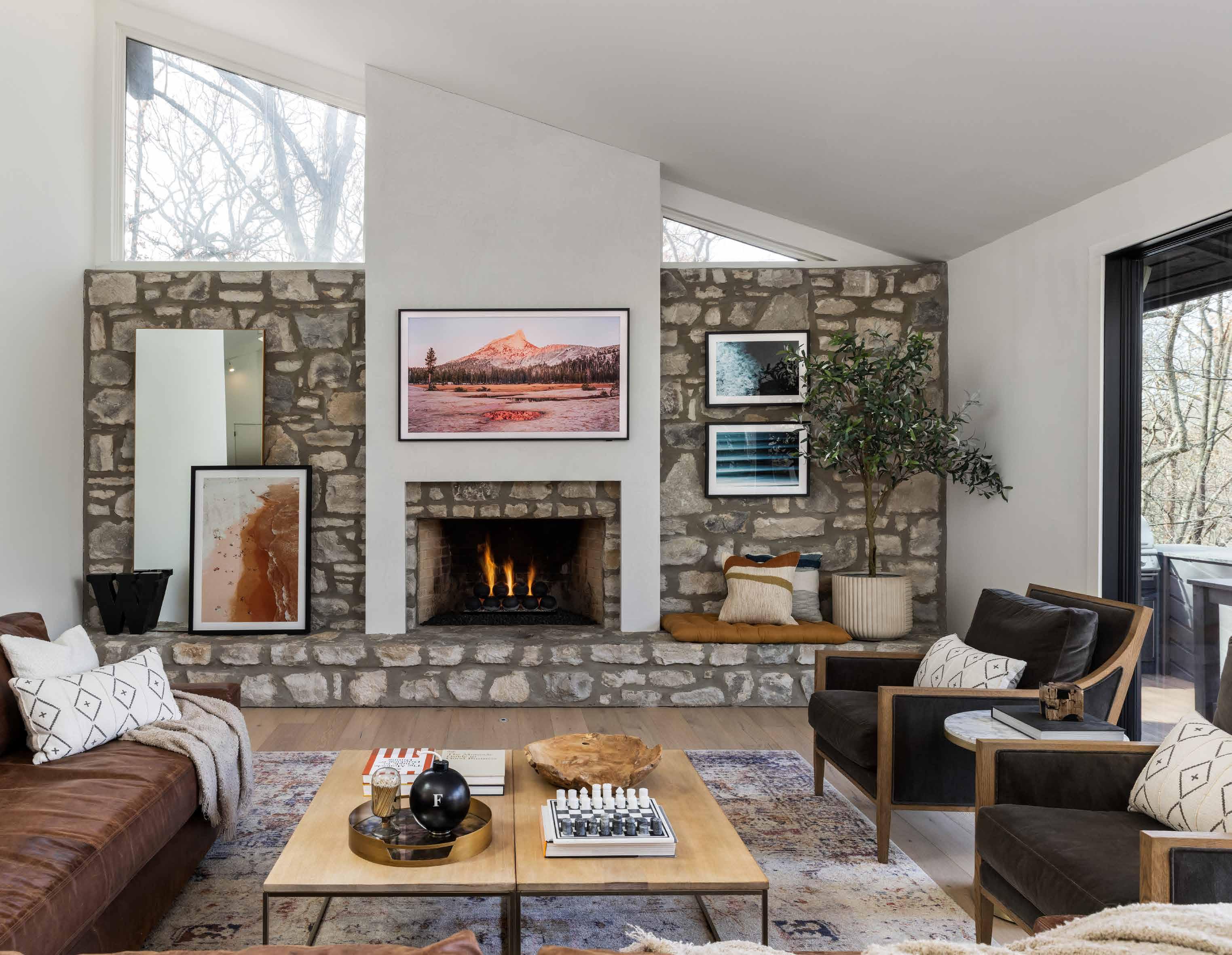 Plumbing & Appliances: Ferguson Tile: International Materials of Design; ProSource; Fireclay Installation: Eddie Cummings Tile Co. Hardwoods: Acme Floor Company Fireplace Stone/ Countertops: Carthage Stoneworks Cabinetry: Profile Cabinet