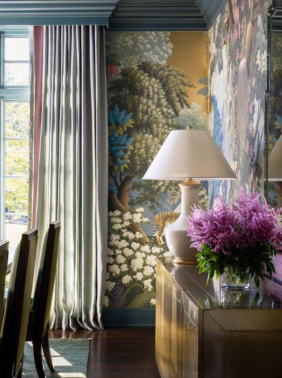 Wall Coverings: Schumacher Paint: Sherwin-Williams Windows: Pella Windows & Doors Window Coverings: Fabricut