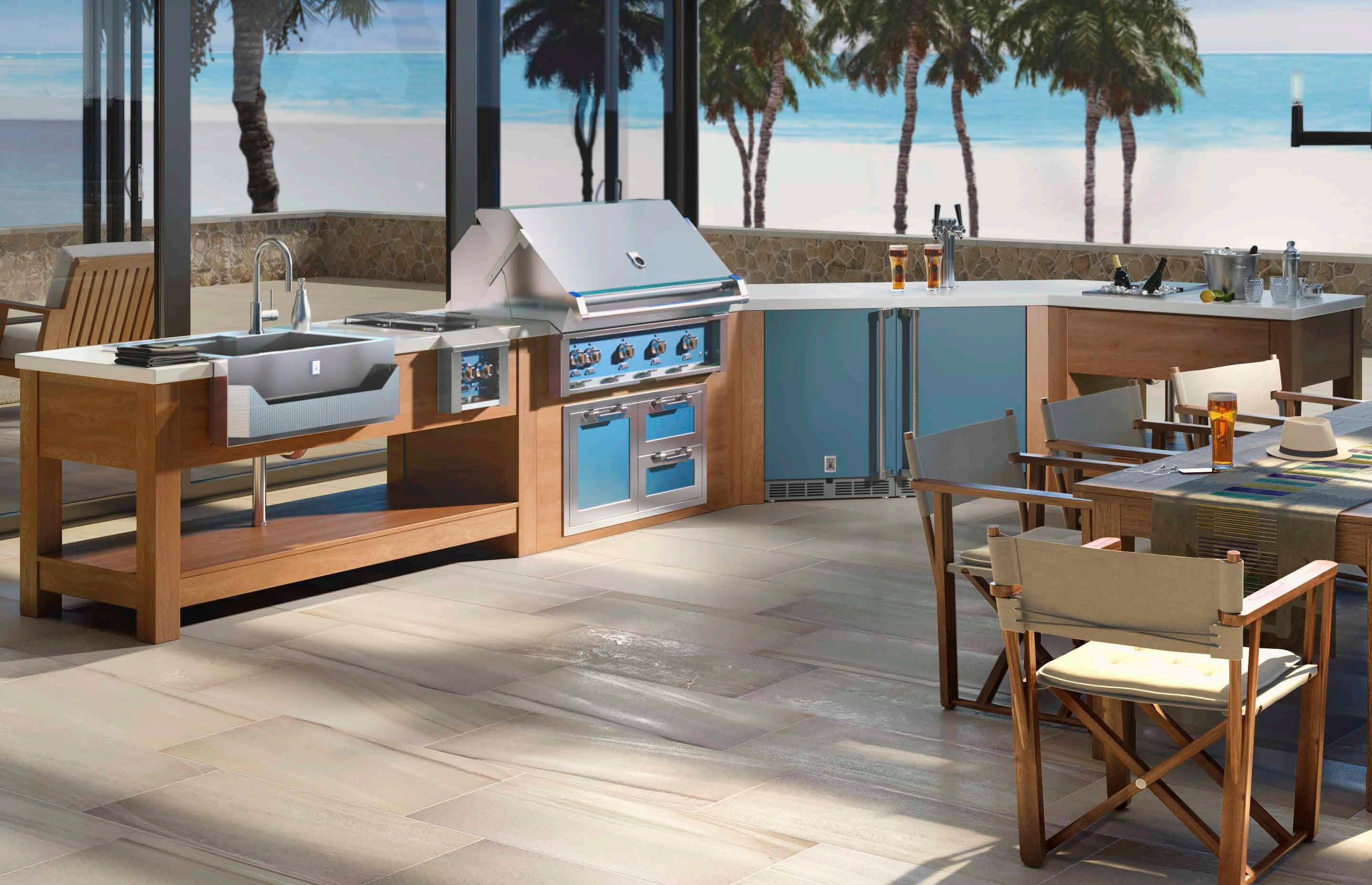 Pools & Spas Lighting Designer: Lighthouse Landscape & Design Precast Concrete (coping, pool deck, walls): Blue Ocean Stone Wood Decking: Geolam Appliances: Hestan/Forno
