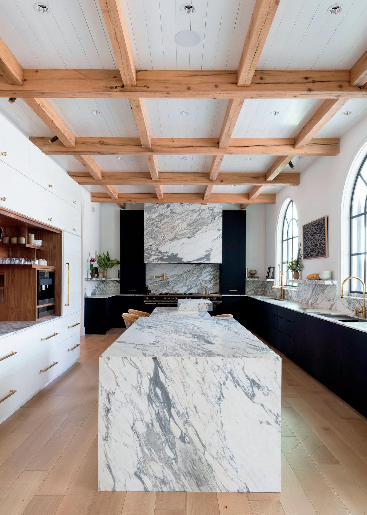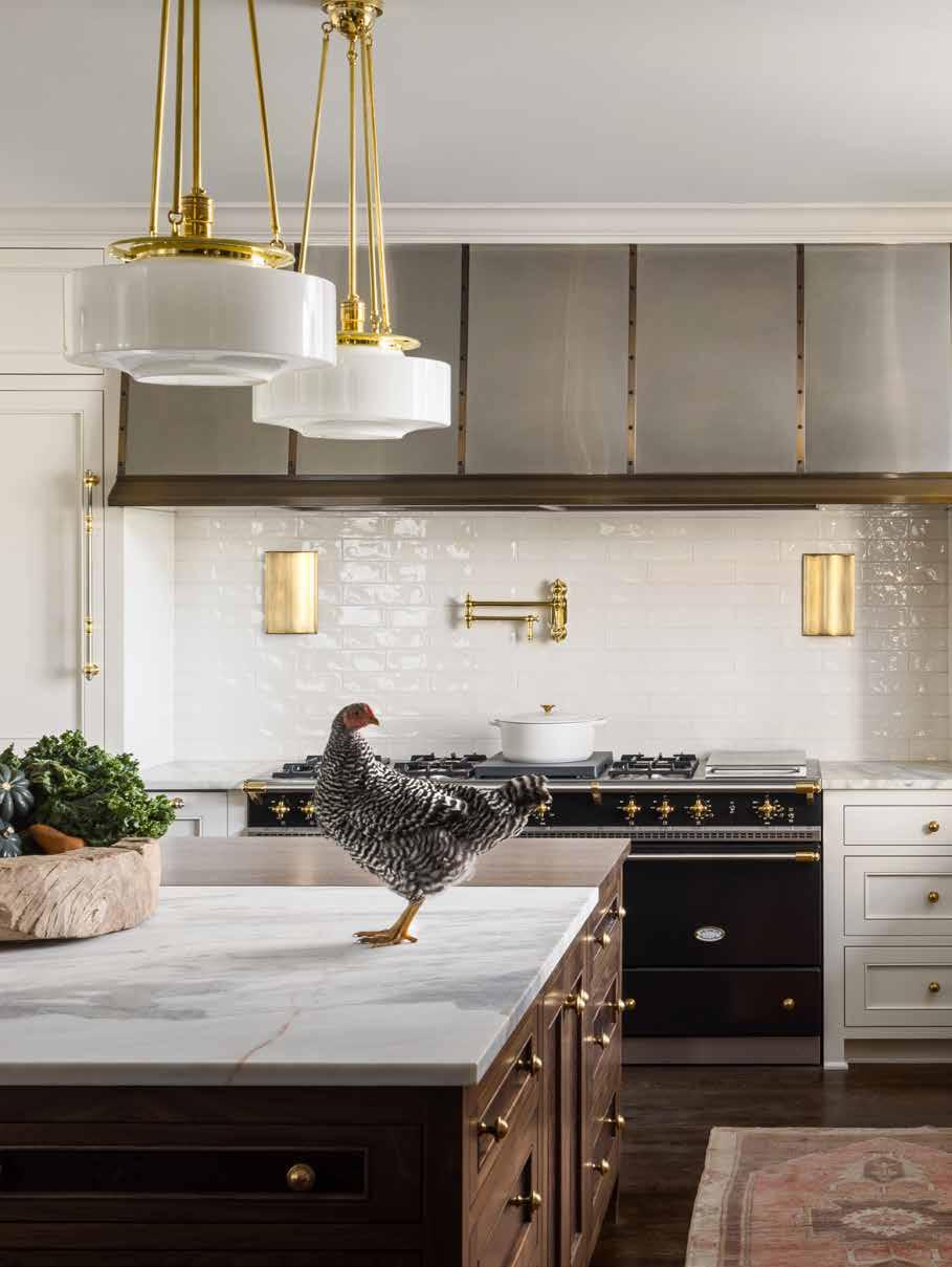 Contractor: RM Standard Construction Appliances: Lacanche range; Sub-Zero/Wolf Vintage Art Sourced from Chairish: Eric Stefanski; Natalie Obradovich; Rebecca Jack Antiques and Accessories: Prize Home + Garden Cabinets and Closets: Built to Fit Custom Cabinets Kitchen Countertops: Triton Stone Group; Dimensional Stoneworks Hardware Pulls: Waterworks