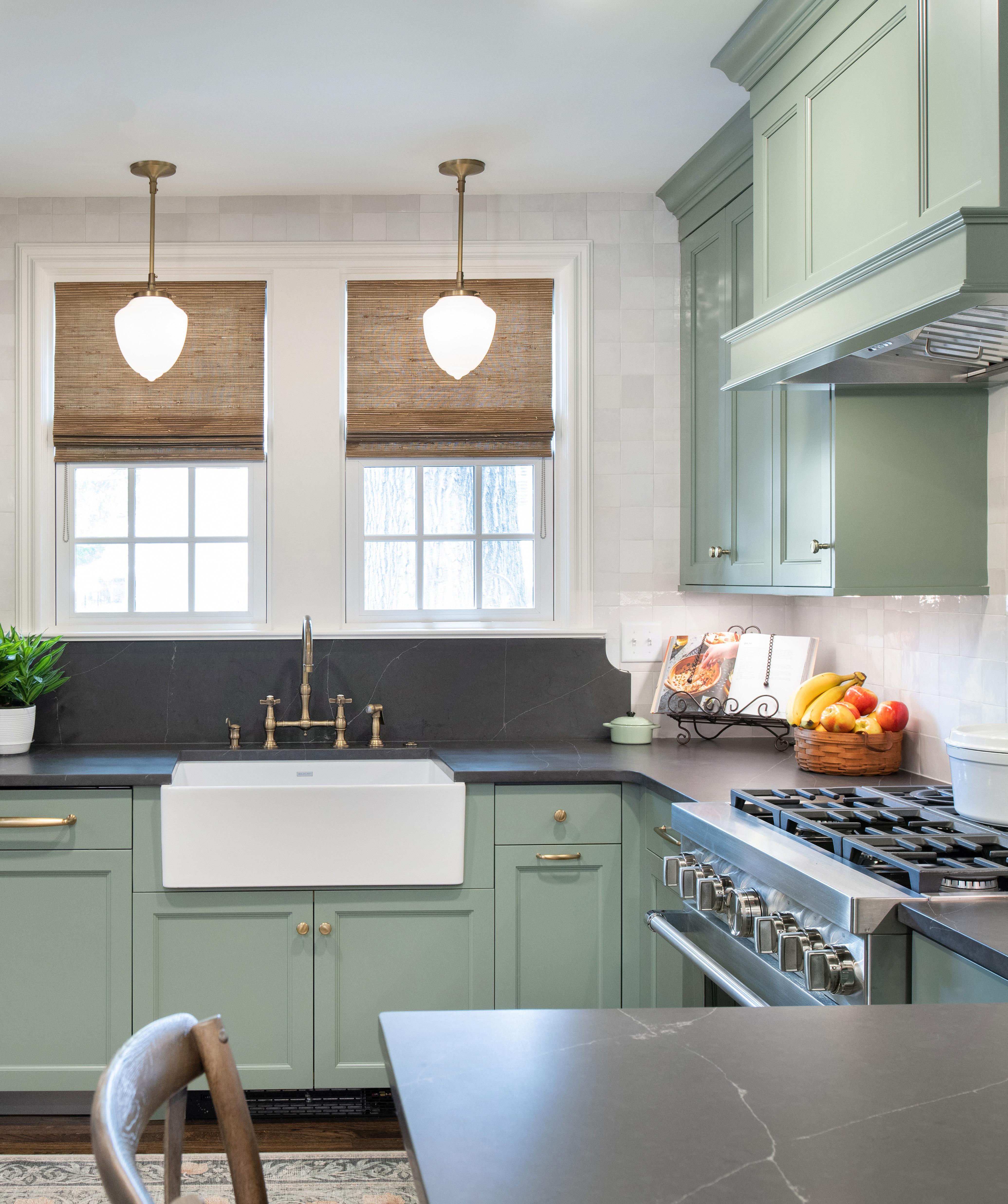 Lighting Fixtures: Relative Lighting Kitchen Plumbing Fixtures: Waterstone from Ferguson Wall Coverings: Brunschwig & Fils–”Bibliotheque”; Rebel Walls–”Bellewood” Flowers: Bergamot & Ivy