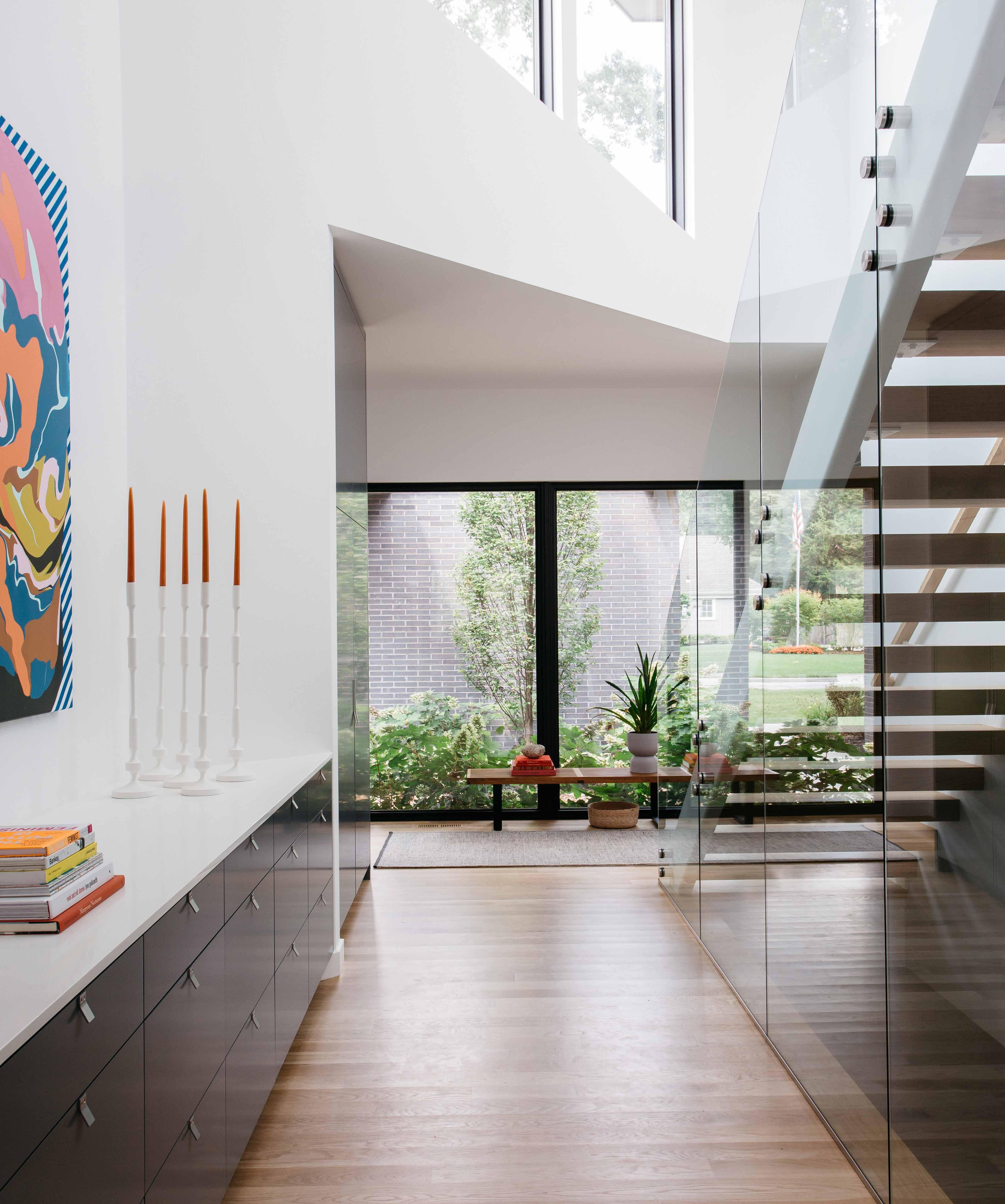 Architect: McHenry Shaffer Architecture Interior Designer: Jen Wood Interiors Contractor: Schmitt Remodeling Engineer: Apex Engineers, Inc. Landscaper: Justin Wood; PLAID collaborative; KC Concrete; Dimensional Innovations; Standard Sheet Metal Appliances: Factory Direct (Sub-Zero and Wolf) Art: Michael Snodgrass; Glenna Adkins; Julie Wood; Jane Gallagher; Kaiser Suidan; Mike Dargas Cabinets: Parks Cabinets Countertops: Stone Surface Inc. Electronics: Fuzion Audio Video–Brandon Brooks Flooring: Acme Floor Company Fabrication: Wine
