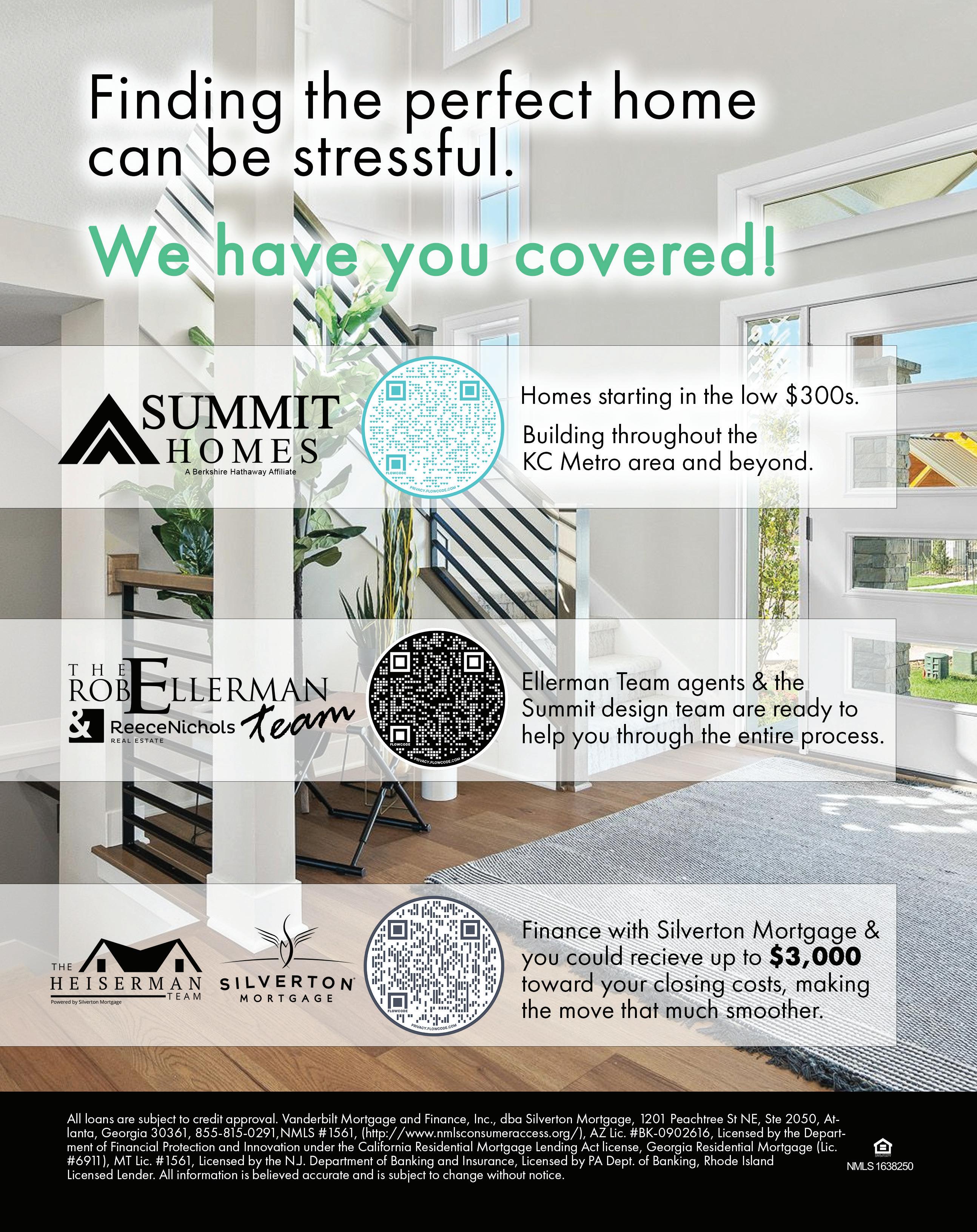 BUILDING’S A BREEZE WHEN YOU WORK WITH SPIESS (PRONOUNCED SP-EEZE) Come visit our model home in the new WaterCrest subdivision Here to build you your next dream home! spiesscustomhomes.com | 913-207-2877 Call to schedule a no charge initial consultation appointment • Custom Homes • Semi-Custom Homes • Ready to move in homes for sale 20+ YEARS EXPERIENCE A DESIGN + BUILD NEW HOME BUILDER YourBankforthe21stCentury.® Philip Lawson Senior Vice-President Phone 816.731.1300 Fax 816.220.9992 plawson@bank21.com • Construction Lending for Consumers and Builders • Permanent Financing after Construction • Full Land and Construction Planning • Refinancing with Great Low Rates 3301 SW Highway Seven, Blue Springs, MO 64014 NMLS MLO #623606 • NMLSR 421482 • www.bank21.com New Home Guide for Augmented Reality Scan QR Code