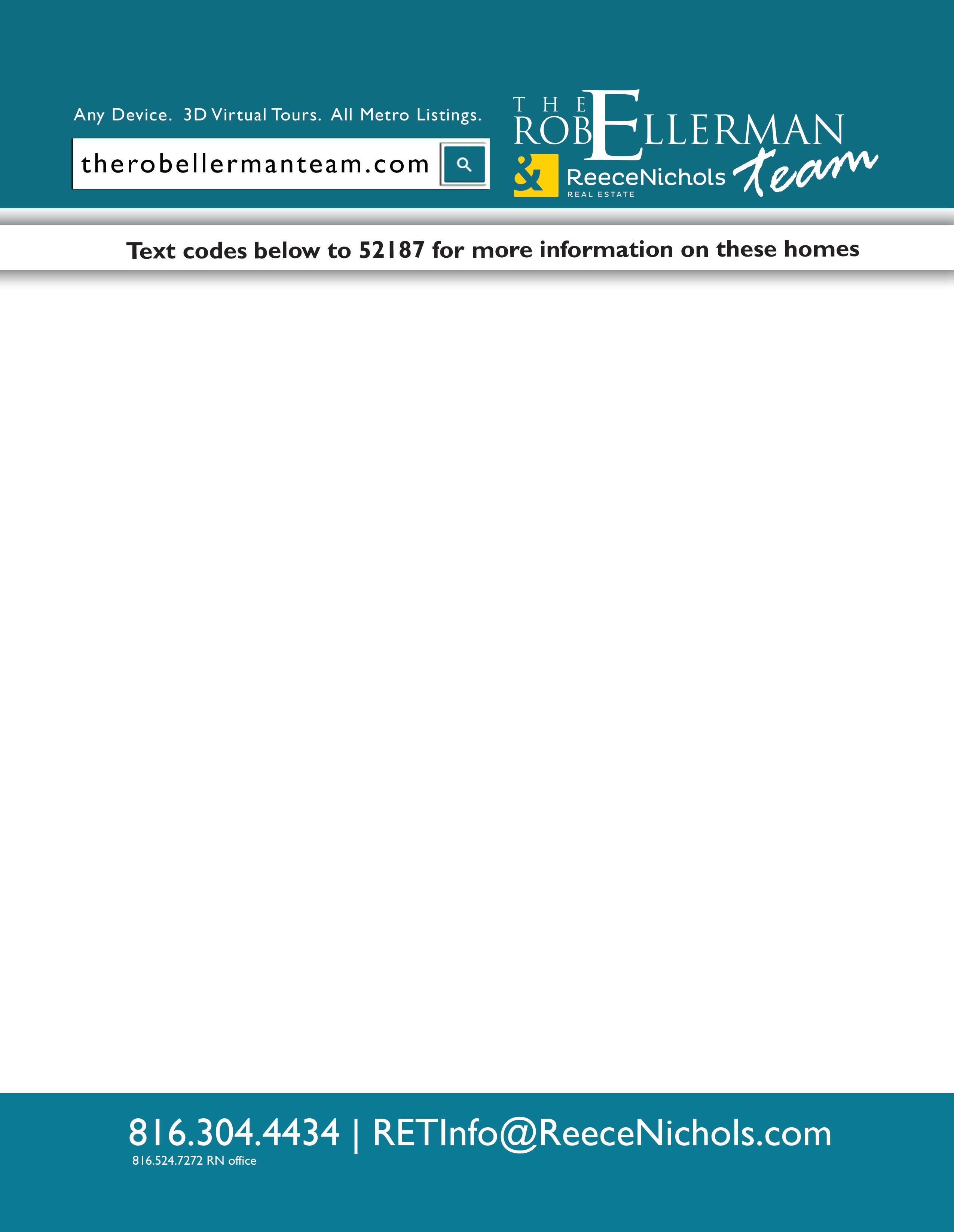 United Mortgage, L.L.C. 816-454-7900 Celebrating 21 Consecutive Years as the Northland’s Preferred Mortgage Leader. Ask for Carl Gennusa (NMLS# 279780) to get pre-qualified in 15 minutes today! “All real estate advertised herein is subject to the Federal Fair Housing Act which makes it illegal to advertise any preference, limitations, or discrimination based on race, color, religion, sex, handicap, familial status, or national origin, or intention to make any such preferences, limitation, or discrimination. We will not knowingly accept any advertising for real estate which is in violation of the law. All persons are hereby informed that all dwellings advertised are available on an equal opportunity basis.” NEXT ISSUE SUBMISSION DEADLINE IS SEPTEMBER 28, 2023 Want to Sell Your Home Quickly & at the Best Price? Ask your Real Estate professional to use The Real Estate Book’s Multi-media Marketing Strategy Search for homes at www.RealEstateBook.com ADVERTISING INFORMATION: Keith Sauro - 913-908-2393 keith@realestatebookkc.com Lonny Cohen - 913-244-5774 lonnycohentrebkc@gmail.com Jared Webb - 913-244-2322 jared@mydesignkc.com PRODUCTION COORDINATOR: Denise Carver denise.trebkc@gmail.com ART DIRECTOR: Ryan Litts – 706-614-7291 treb@rlc.agency NMLS# 272306 KEITH SAURO President/Publisher 913-908-2393 keith@realestatebookkc.com Text Keith to 52187 for contact info SCAN OUR QR CODES FOR AN INTERACTIVE EXPERIENCE Greater Kansas City & 2BR/1BA - $225,000 Fresh & low maintenance home with updated features. 2+ bedrooms, updated bath & kitchen. Spacious yard, great amenities, easy city access. Bobbi Cordova 816-517-9294 Bobbi@ReeceNichols.com Text RBJVLHZ to 52187 for Info & Photos 201 NE 91st St, Kansas City, MO 816-407-5232 8407 N. Mercier Street • MO 64155 | 816-468-8555 Land for Sale | $29,950 Established neighborhood near the Ford plant in Claycomo. Easy access to highway and close to schools. Come build your house here. Jim Dollins 816-213-8176 www.jimdollins.com Each RE/MAX Office is Independently Owned and Operated. 816-587-2323 Text RBJWRMT to 52187 for Info & Photos Heritage 7020 NW 83rd Terr Kansas City, MO 64152 $45,000 - 1800 Sq.Ft. Building - multi purpose currently zoned manufacturing. Two office areas, lobby and full bath. 32 x 20 shop with garage door for large equipment. Melinda Humphrey 816-217-4228 rmx@mchsi.com 1350 N Jesse James Rd. Excelsior Springs, MO 64024 Each RE/MAX Office is Independently Owned and Operated. 816-630-4000