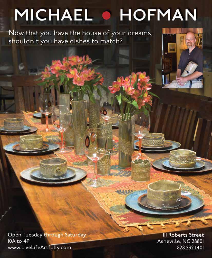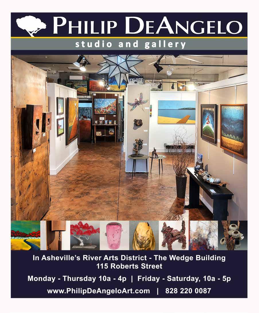 Mark Bettis Gallery offers a curated collection of quality fine art reflecting the aesthetic harmony of nature that will be the perfect accent for your home. RIVER ARTS DISTRICT 123 Roberts Street, Asheville, NC 28801 facebook.com/markbettisart mbettisgallery (941)587-9502 | MarkBettisGallery.com G A L L E R Y GLASS PAINTINGS CERAMICS SCULPTURES 38 Fine Homes|Spring 2024
