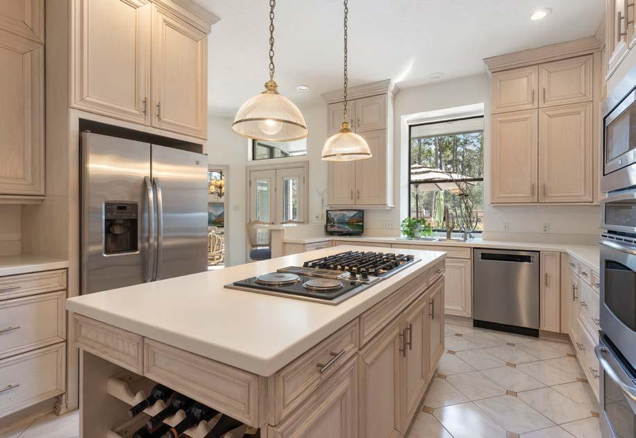 Nestled under the shade of mature oaks on .65+ acres, framed by sweeping views of multiple fairways and water features on the South Course, this 5BR/6.5BA home is a gorgeous retreat. Highlighted by a comfortable 6,797± GSF, the home features an updated gourmet kitchen with dual islands, new wet bar, as well as a dining area with custom built-ins, nook and coffered ceiling. Enjoy sunrises and balmy breezes from this sophisticated and enticing golf course home.