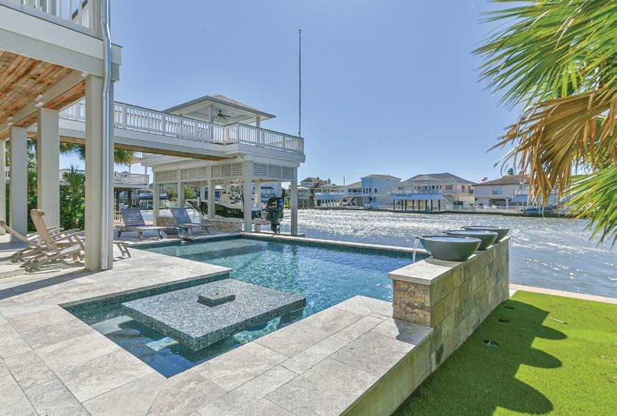 Enjoy panoramic views of Sydnor Bayou and Moody Gardens Golf Course from every room in this updated 3 bedroom, 3 bath home. Featuring a rock waterfall pool and nearly 1/2 acre of waterfront property, this house is a dream retreat. With a gas fireplace, wood floors, custom cabinets, and a private primary suite, this home offers luxury living. Located near shopping, dining, and entertainment, including Sugar Bean coffee shop and Basin Bistro.