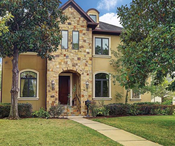 3765 Drummond is a handsome stone, slate and stucco home with 5 beds and 3.5 baths. Hand-painted woodwork gives a European flair to the interior, including beamed and recessed ceilings, an inlaid wooden medallion in the dining room floor, and custom cabinetry. The living room has a corner gas log fireplace and a faux-finished wine room. A full-view glass door leads to the covered outdoor porch and back yard of the large corner lot. The ground floor master bedroom suite features beamed ceilings, a bay window, hardwoods, marble floors, and granite counters. A media room with wet bar and mini ‘fridge and 4 additional bedrooms are located upstairs. Offered at $1,399.000 by Sachin Chowdhry of Roger Martin Properties. Call 832-646-0250 for details.