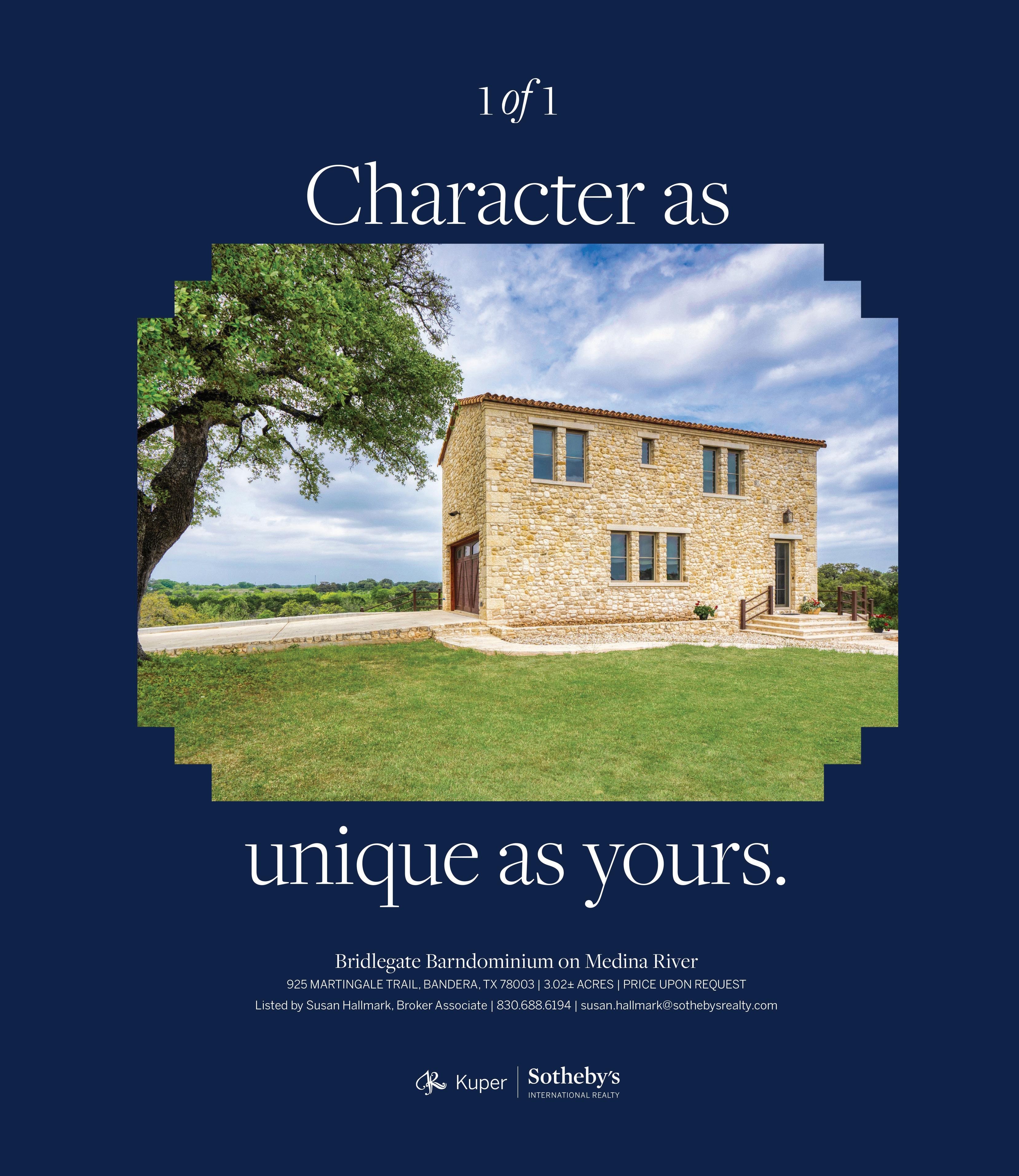 Kuper Sotheby’s International Realty 1002 River Road, Ste 300 Boerne, Texas 78006 (830) 688-6194
