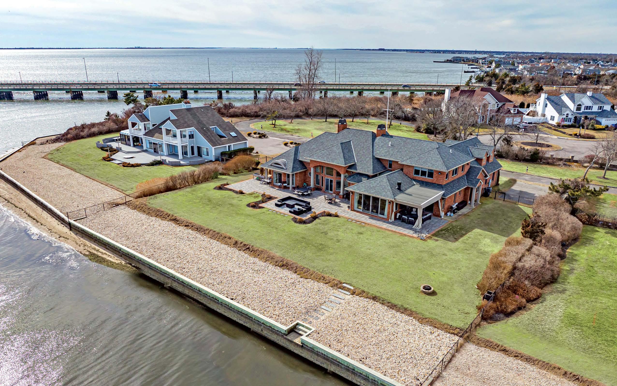 Built in 2014, this all-brick, custom-designed home spans 5,996 square feet on over an acre of private land, offering breathtaking views of the Great South Bay and Robert Moses Bridge. Ideal for boating enthusiasts, it features deep water docking and 2 boat slips. The estate includes 5 bedrooms, 4.5 bathrooms, a grand two-story great room, immaculate chef’s kitchen and a 1,400 square foot primary suite with a custom office. Additional highlights include a second-floor recreation room, radiant heat, central air, and custom finishes throughout. Sitting on a high elevation to endure high tide events with ease, this waterfront haven provides privacy and luxury in an exceptional location.