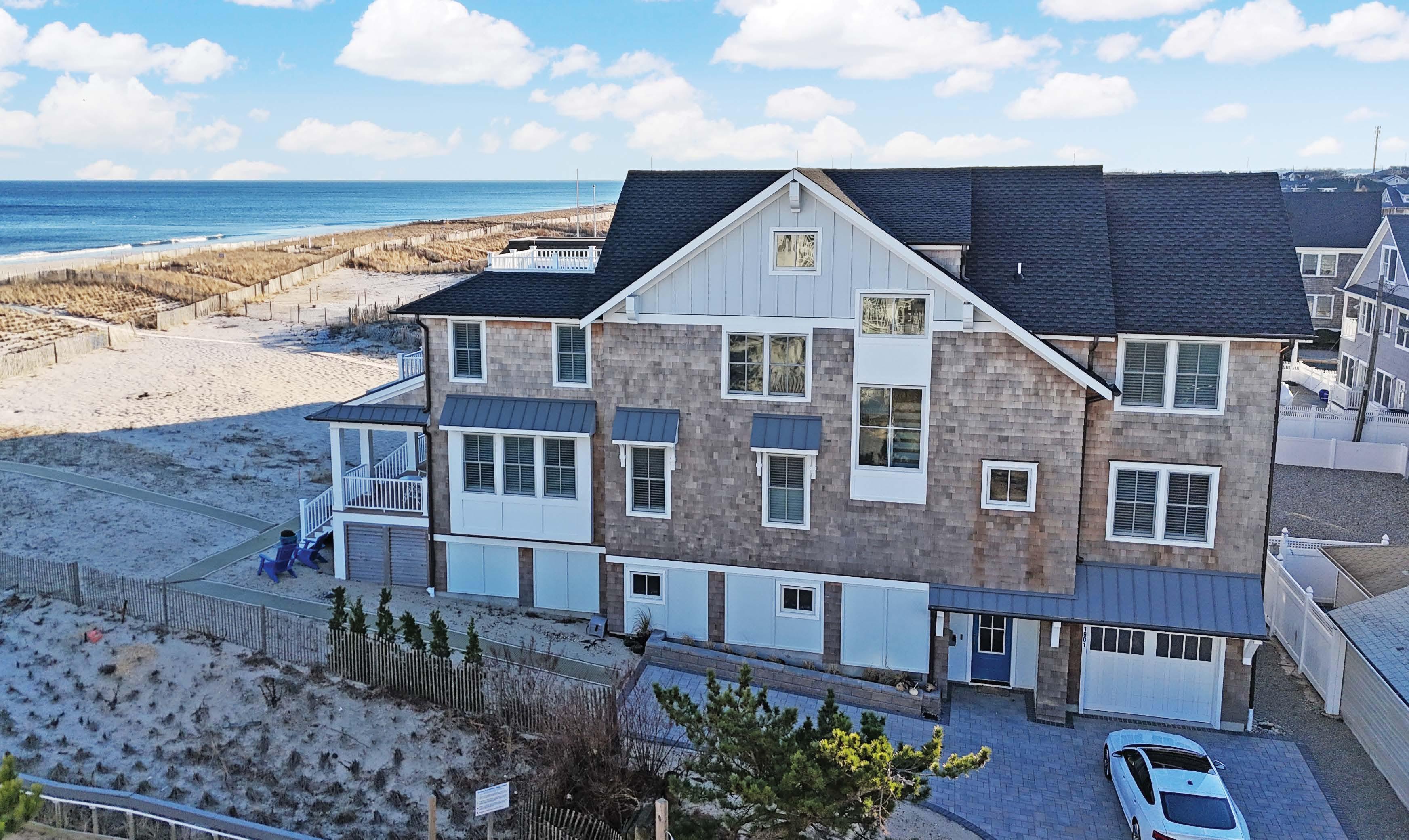 Revel in vibrant sea vistas and watercolor sunrises from this stately beach haven poised along 120± feet of magnificent and direct ocean frontage. Take in the azure Atlantic and enjoy a private dune crossover with built-in seating that allows for direct beach access from your own backyard - and a peaceful spot to enjoy the gentle lapping waves.