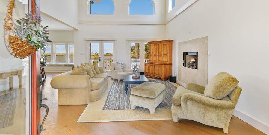 This beautiful waterfront property has everything you would expect for island living! The open floor plan includes an island kitchen with farmhouse sink, Monogram gas range, separate ice maker, ample storage space, walk in pantry with laundry room, plus a dry bar with wine fridge. The kitchen/dining combo opens to the living room & breakfast nook with built-in bench seating. The spacious primary suite boasts gorgeous views, while the primary bath offers custom barn doors, soaking tub, separate shower and two closets. Two guest bedrooms with ensuite baths, plus a half bath, are also on the main level. Upstairs you will find a unique space which includes a family room with built-in bunk beds, a game area, guest bedroom, and an oversized bathroom with dual shower and triple sink vanity. Downstairs, enjoy entertaining in your pool year-round with a heater & chiller.