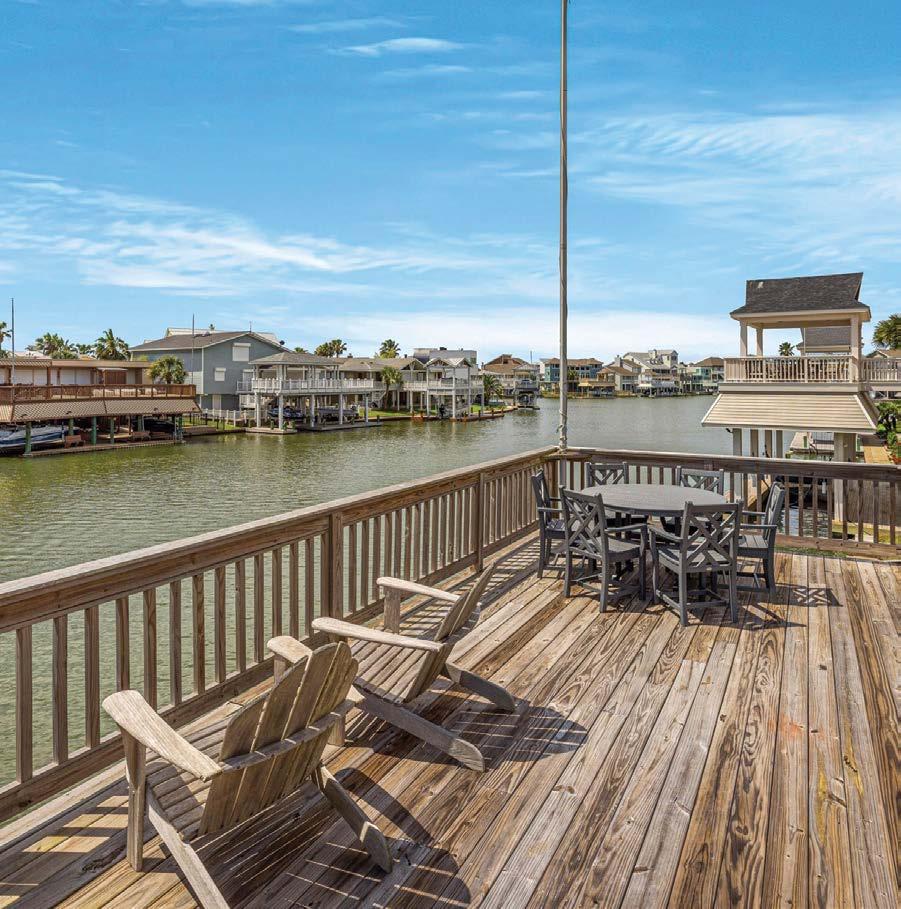 Golf course and bay views abound from this stunning, completely updated 3 bedroom/3 bath home in sought after Pirates Cove. With a coveted south facing view, summer breezes will keep you cool and relaxed on the expansive back deck overlooking hole 11 of the Galveston Country Club course. Updates abound including but not limited to new high end stainless appliances, new roof 2020, led lights throughout, wired for sound, electric hurricane shutters throughout,2 newer HVAC units-4.5 tons total, Coretec LVP, Cesar stone quartz countertops, alarm system. This home is a true gem and must see. The expansive primary bedroom is located on the top floor with amazing Bay views, fully remodeled bath with bonus of personal refrigerator.