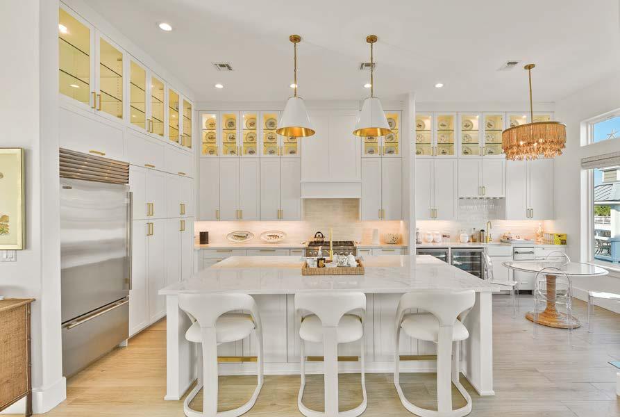 This beautiful waterfront property has everything you would expect for island living! The open floor plan includes an island kitchen with farmhouse sink, Monogram gas range, separate ice maker, ample storage space, walk in pantry with laundry room, plus a dry bar with wine fridge. The kitchen/dining combo opens to the living room & breakfast nook with built-in bench seating. The spacious primary suite boasts gorgeous views, while the primary bath offers custom barn doors, soaking tub, separate shower and two closets. Two guest bedrooms with ensuite baths, plus a half bath, are also on the main level. Upstairs you will find a unique space which includes a family room with built-in bunk beds, a game area, guest bedroom, and an oversized bathroom with dual shower and triple sink vanity. Downstairs, enjoy entertaining in your pool year-round with a heater & chiller.
