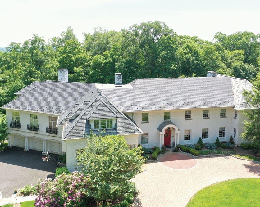 This beautiful country estate on a prime 3 acre setting includes a heated inground pool with a double pavilion cabana. French doors overlook the grounds with views from the living room with fireplace and built-ins. Formal dining room with columned entrance, state-of-the-art kitchen opening to the 2-story great room, office/library, media room, bedroom, bath, and den, service entrance with mudroom, an office/bedroom, bath and powder room complete the first floor. The second floor includes the primary suite with sitting room, bedroom/fireplace, beautifully updated marble bath with domed ceiling and 2 large walk-in-closets and veranda. 2-story lounge area, 3 bedrooms and 2 baths. Finished walk-out lower level. Elevator to 3 floors and a 5-car garage! Offered at $4,495,000