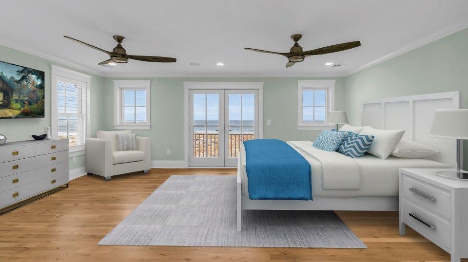 Welcome to this “magazine” worthy beachside home. The architectural and cosmetic details throughout are uniquely appealing. Floor plan like none other includes an ultimate family suite. When you enter the home from the ground level you will immediately be drawn to the attractive tile work that can also be found through the home. Take the elevator to the main level and be WOWed by the open floor plan, living room with gas log fireplace, and fantastic kitchen which is complete with quartz countertops, beverage cooler, ice maker, 2 dishwashers, Jenn-Air gas range with griddle & double oven, and Jenn-Air commercial size refrigerator. Blue accent island with waterfall quartz compliments the look of this space. Main level also includes the primary ensuite bedroom. Top floor is the ultimate family suite which consists of 2 bedrooms and 2 bathrooms. Also found on the top floor is the utility room, 2 guest bedrooms with ensuite bathrooms. Every bedroom offers a water view!
