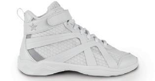 A clean and contemporary design, REBEL RISE is constructed for sideline cheerleaders, with key features of comfort and lightweight durability. Optic White with a rebellious twist: it’s customizable! Available in Black or White. Youth 11-13, 1-3; Adult 4-13. Customizable logo, minimum order quantity is 20 units.