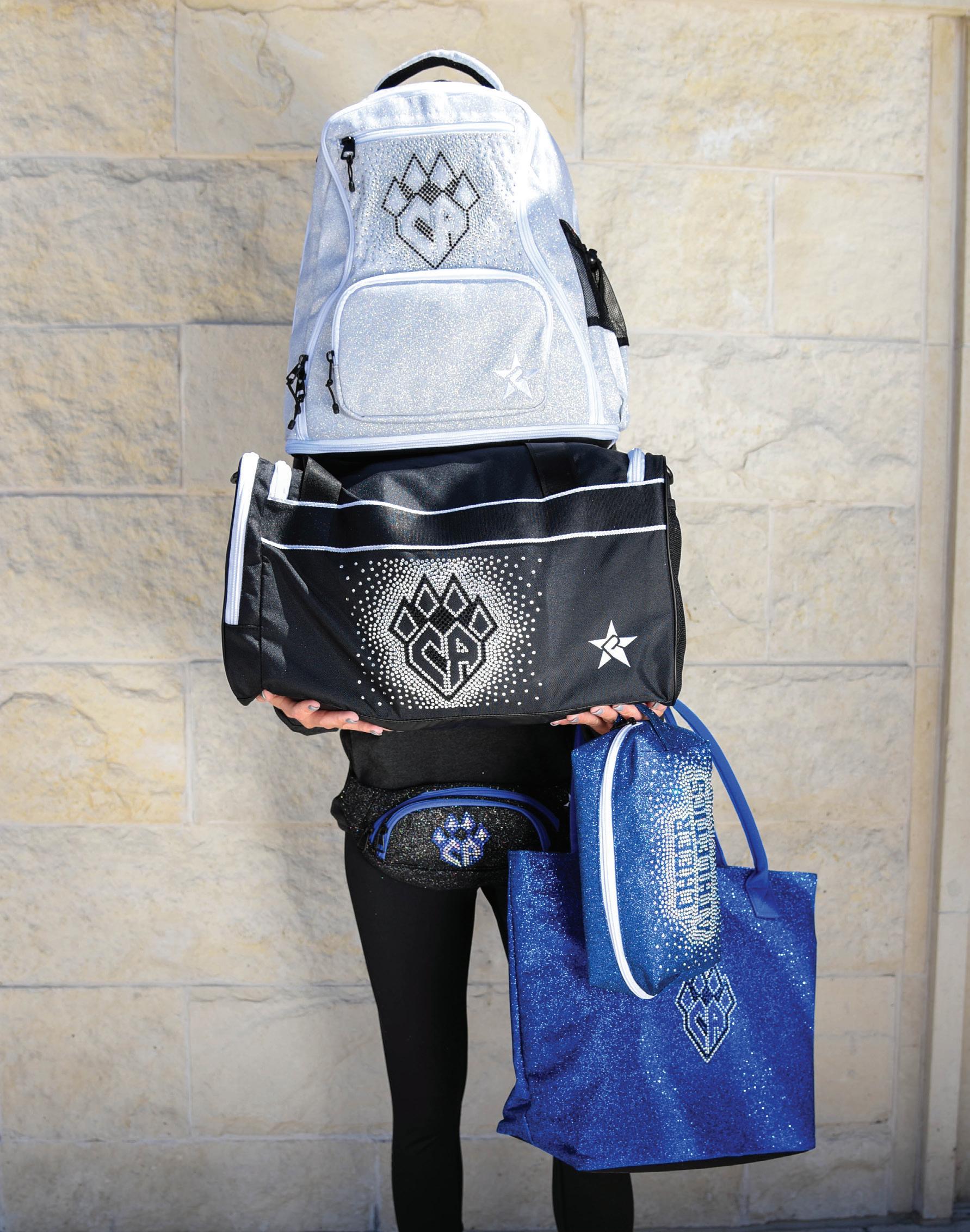 THE STRIKE 2.0 REBEL DREAM BAG —gorgeous, spacious, high-tech, super lightweight, and built to last! Available with black or white zipper. Team orders (minimum order of 8) can be customized Rebel Crystal school/gym names and logos!