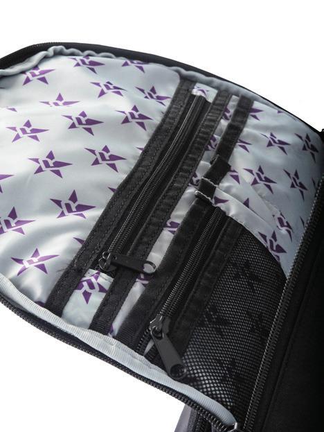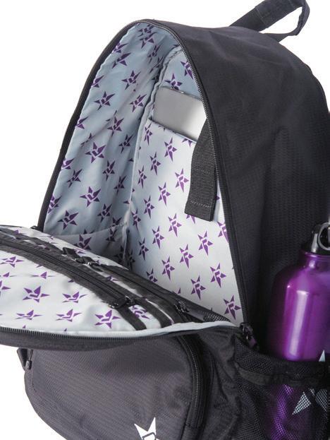 Seperate internal compartment with padded laptop pocket Internal organizational sleeve and pockets and clips Water bottle pockets on both sides CONTACT YOUR REBEL ACCOUNT MANAGER TODAY! REBELATHLETICCHEER.COM