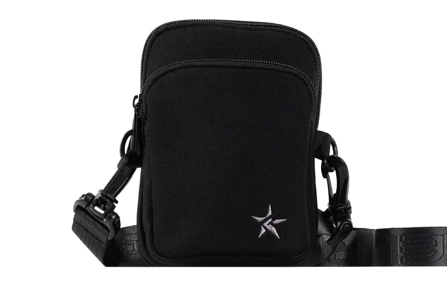 CROSSBODY BAG BLACK NEOPRENE CROSSBODY BAG** SIGNATURE BLACK & SILVER