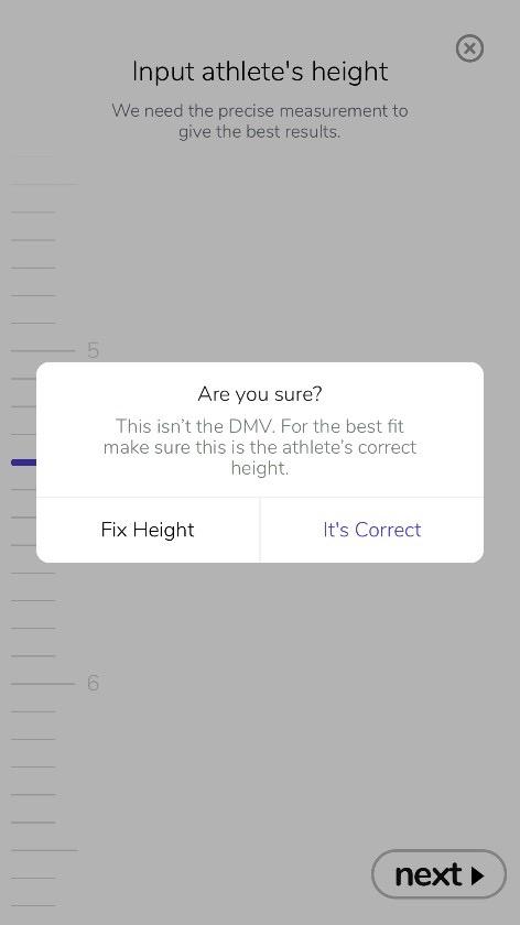 2. Confirm the athlete’s height. Either click ‘It’s Correct’ or click ‘Fix Height’. Repeat this step if height adjustment was made.