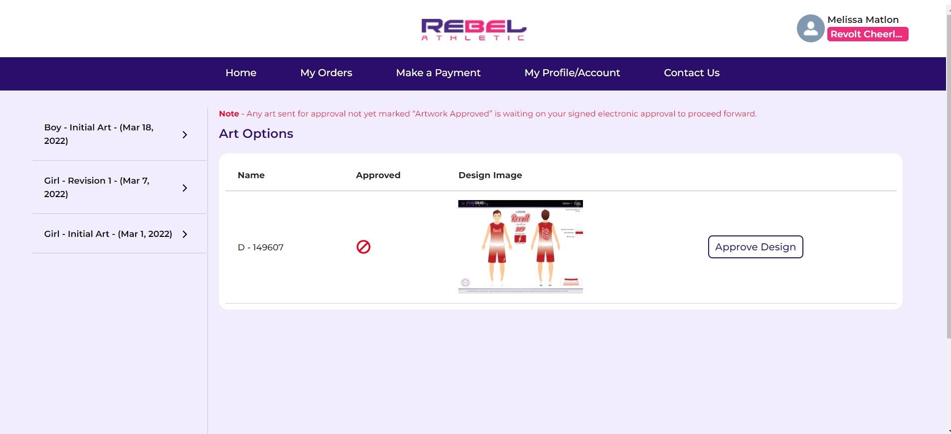 SELECT THE ARTWORK & CLICK “APPROVE DESIGN”