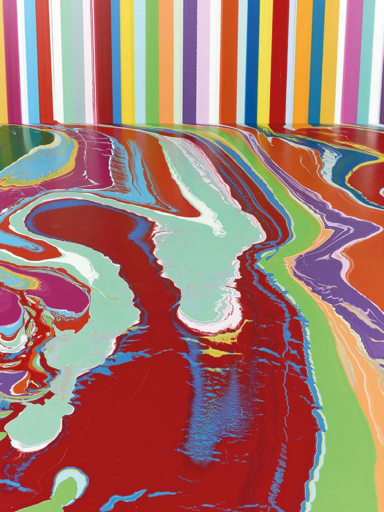 Ian Davenport, che fa ritorno in spazi pubblici in Italia dopo la mostra del 2022 al Chiostro del Bramante a Roma, ha preparato per Todi