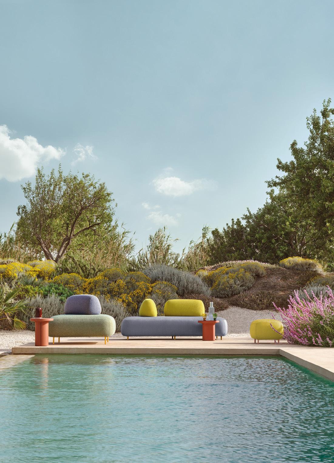 ALMA. La collezione outdoor concepita dall’industrial designer argentino Francisco Gomez Paz è sviluppata attraverso algoritmi generativi e tecnologie a controllo numerico. La struttura della poltrona e del divano a due e a tre posti è realizzata in acciaio inox verniciato opaco o lucido; cuscini e imbottiture sono realizzati con fibre di poliestere riciclato e biodegradabile. www.paolalenti.it
