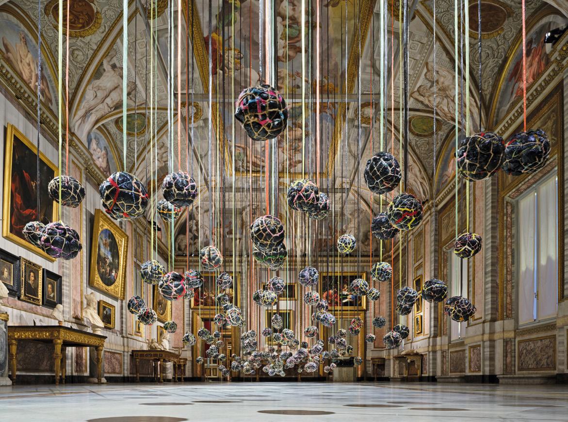 Suspended Playtime (2008) è una delle installazioni dell’artista kenyota-americana Wangechi Mutu, per la prima volta – fino al 14 settembre – esposte alla Galleria Borghese nella mostra Poemi della terra nera