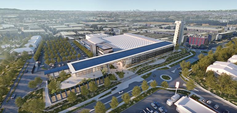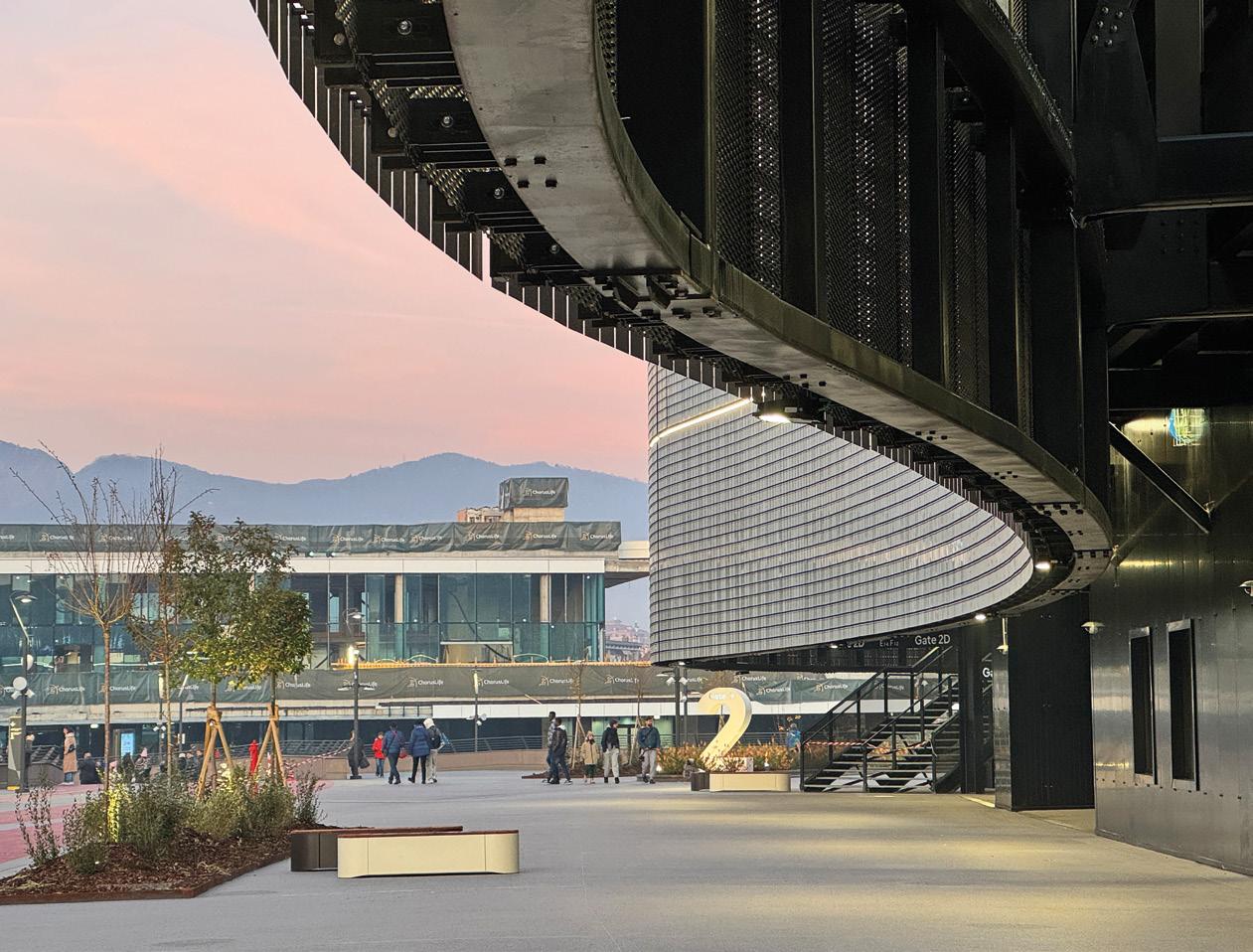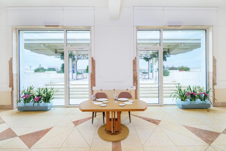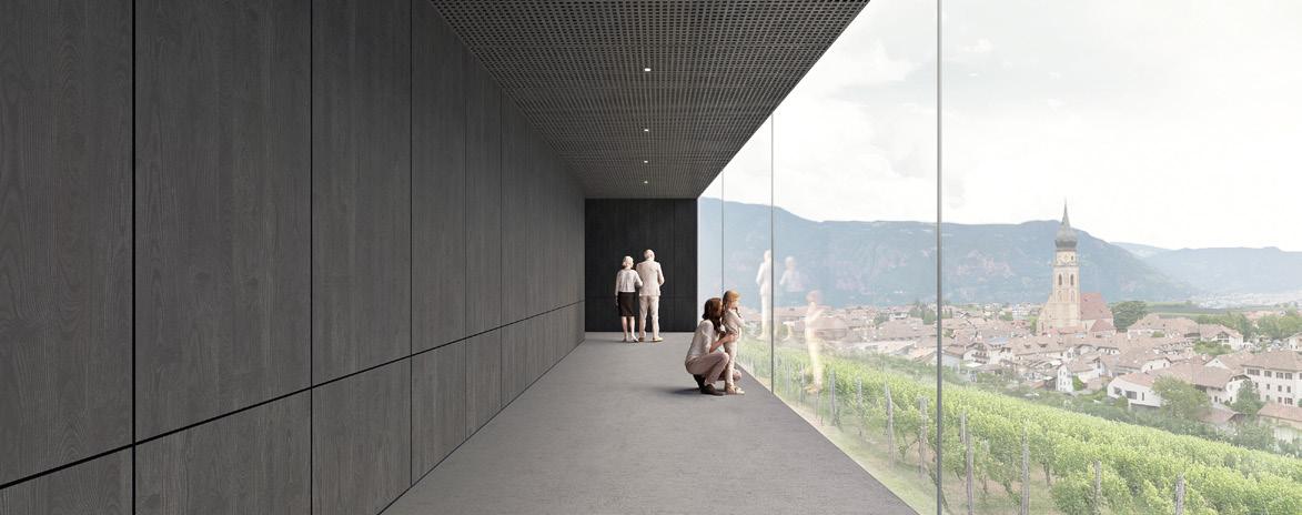 La scenografia della mostra esalta gli elementi distintivi del progetto, come i soffitti retrattili che modulano la luce naturale e i parapetti meccanici che ampliano o limitano la prospettiva sul paesaggio urbano circostante.