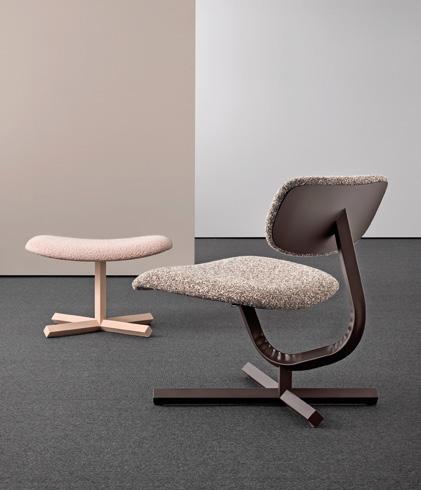 TYPO LOUNGE CHAIR & OTTOMAN. La collezione progettata da Amdl Circle si amplia con una seduta lounge e un pouf poggiapiedi che mantiene il design originale, esaltandone il comfort e l’ergonomia. Distintivo è il tubolare metallico a sezione quadrata che dà forma alla struttura, in un gioco di pieghe e drappeggi che evidenzia l’expertise dell’azienda nella lavorazione del metallo. www.marasrl.it