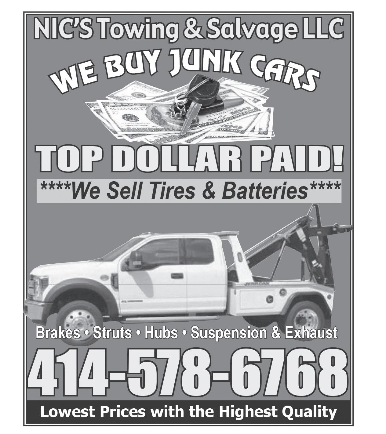 License & Bonded $500 & up cash on your junk cars 414-544-3900