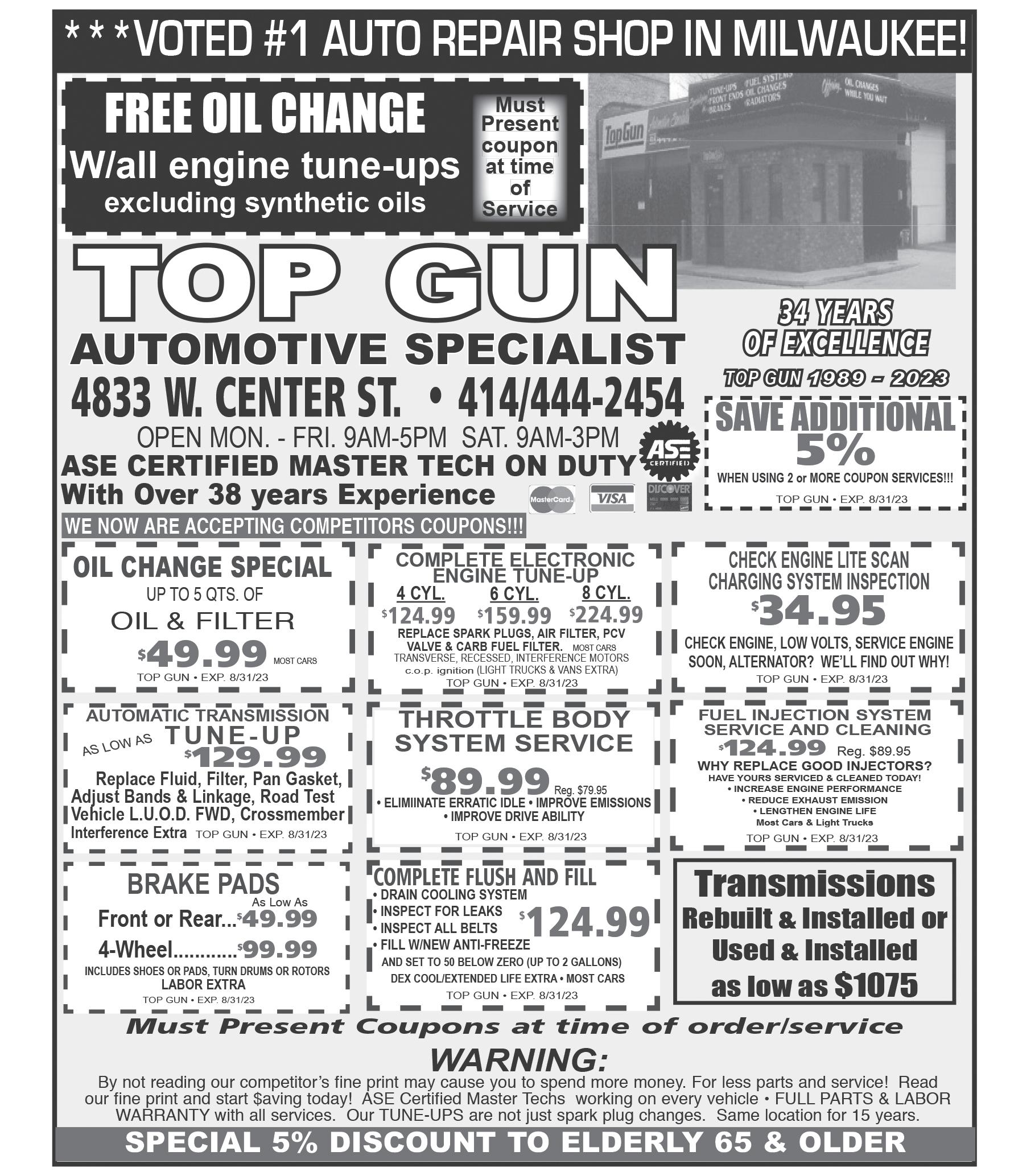 Call us today for advertising: 262-370-6429 TV WEEKLY July 30 - Aug. 5, 2023 PAGE 53 DISPLAY CLASSIFIEDS FOR AS LITTLE AS $15.00...CALL TODAY 262/370-6429 RUBY ISLE AUTO • Tires • Service • Sales 11137 W. Silver Spring Dr. (414)438-1900 WE WANT YOUR BUSINESS FREE ALIGNMENT CHECK FREE SCAN TEST WE OFFER 0% FINANCING UP TO 6 MONTHS We Work With Carmax, FLEET, Car Shield & All Extended Warranty Companies Carter Christian Academy Campus Are Accepting Applications for 2023-2024 School Year Carter's Provides: •Door to Door Transportation •Hot Breakfast & Lunch Program •After School Tutorig / Basketball 414-731-7223 414-732-6416 414-233-0833 414-544-4092 Unable to work? Denied Benefits? We can help! Social Security Disability Law. Bill Gordon & Associates. Win...No Award / No Fee. All cases considered. Call today for immediate help! (888)632-7546 JunkingTowing& Paying Top Dollar For your unwanted vehicles No Title....No Problem We Pay More Guaranteed! (262)305-8604
