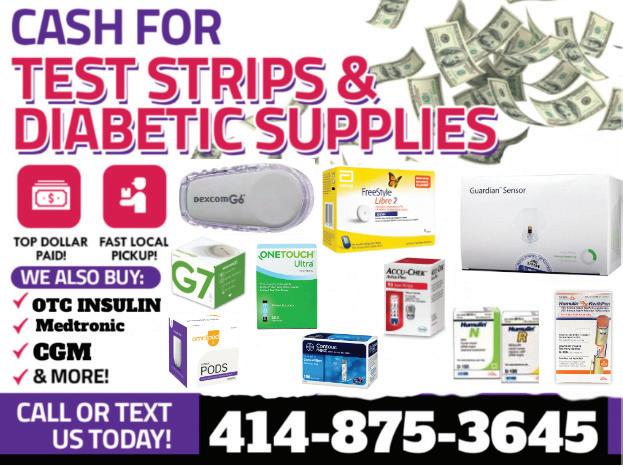 DISPLAY CLASSIFIEDS FOR AS LITTLE AS $15.00... CALL 262/370-6429 TOP DOLLAR PAID!! CASH PAID! Sealed & Unexpired Diabetic Strips and Sensors only WE WILL BEAT ANYONES QUOTE! 414-892-4003 Mention you saw this ad in The Red Book AVERAGE PAYOUT AROUND $150 or More Cash For: Test Strips and Sensors only CASH PAID! Put CASH in Your Hand NOW! FREE Local Pick up We PAY What We Say!! CASH Paid on The Spot! We will BEAT Anyones quote! 262-358-8669 Mention you saw this ad in The Red Book NOW THE Vraylar, Invokana, Jardiance, Enbrel, Rinvoq HELP WANTED…. Caretaker needed for senior housing Compensation: 1 bedroom apartment for services. (security deposit required) • Clean areas, apartment turn-overs, lobby, corridors, elevators, laundry facility, stairways, exterior, moping, sweeping, clean windows etc. according to company standards and within required time frames. 414-355-0435