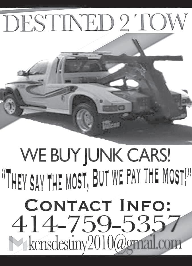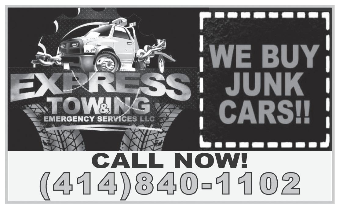 PAGE 2 TV WEEKLY July 30 - Aug. 5, 2023 Call us today for advertising: 262-370-6429 P U T T H E N U M B E R I N Y O U R P H O N E J U S T I N C A S E P U T T H E N U M B E R I N Y O U R P H O N E J U S T I N C A S E PUT THE NUMBER IN YOUR PHONE JUST IN CASE PUT THE NUMBER IN YOUR PHONE JUST IN CASE Flatbed Towing • Lockouts • Tire Change MILWAUKEE TOWING AND JUNKING “Drive Safe But Put The Number In Your Phone Just In Case” 414-627-TOWS (8697) UP TO $1,000 FOR JUNK CARS! “WE DO PICK UPS IN MILWAUKEE TOW LOT”!!! PAGE 2 TV WEEKLY July 30 - Aug. 5, 2023 Call us today for advertising 262-370-6429